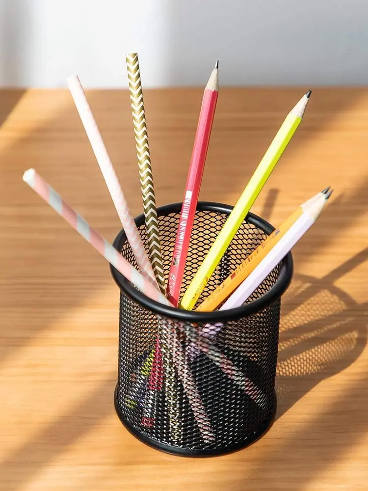 ·This classic, elegant, and meticulously designed black wire mesh pencil cup / desk organizer keeps your desk looking sleek and sophisticated.
