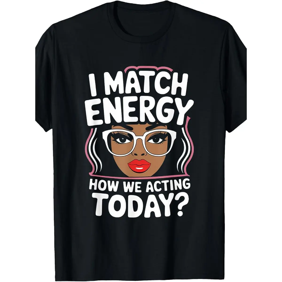 I Match Energy How We Acting Today Sarcasm Funny Vibes T-Shirt, Men's T-shirt, plus size, round neck, black, machine washable, 180g, gift, PLUS SIZE
