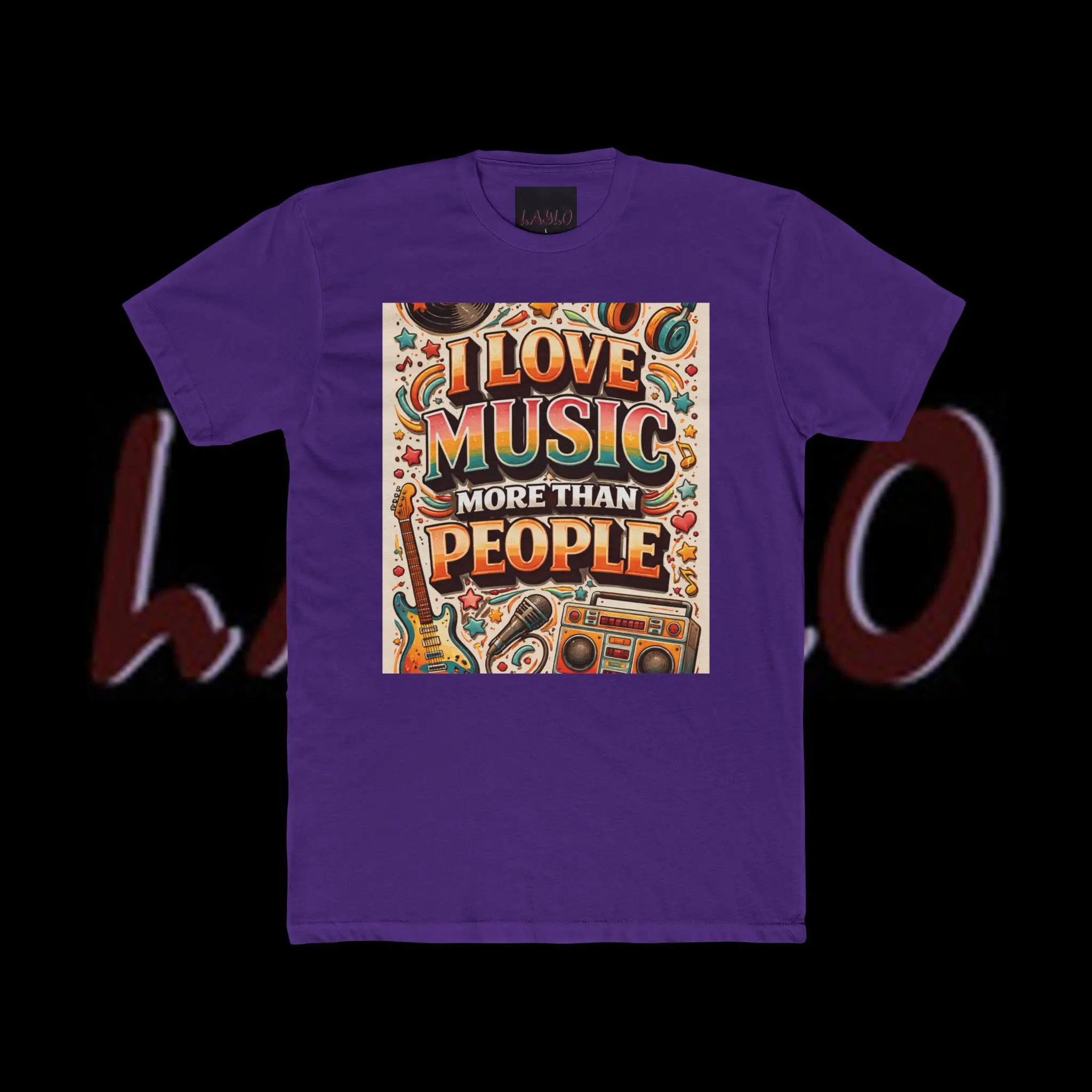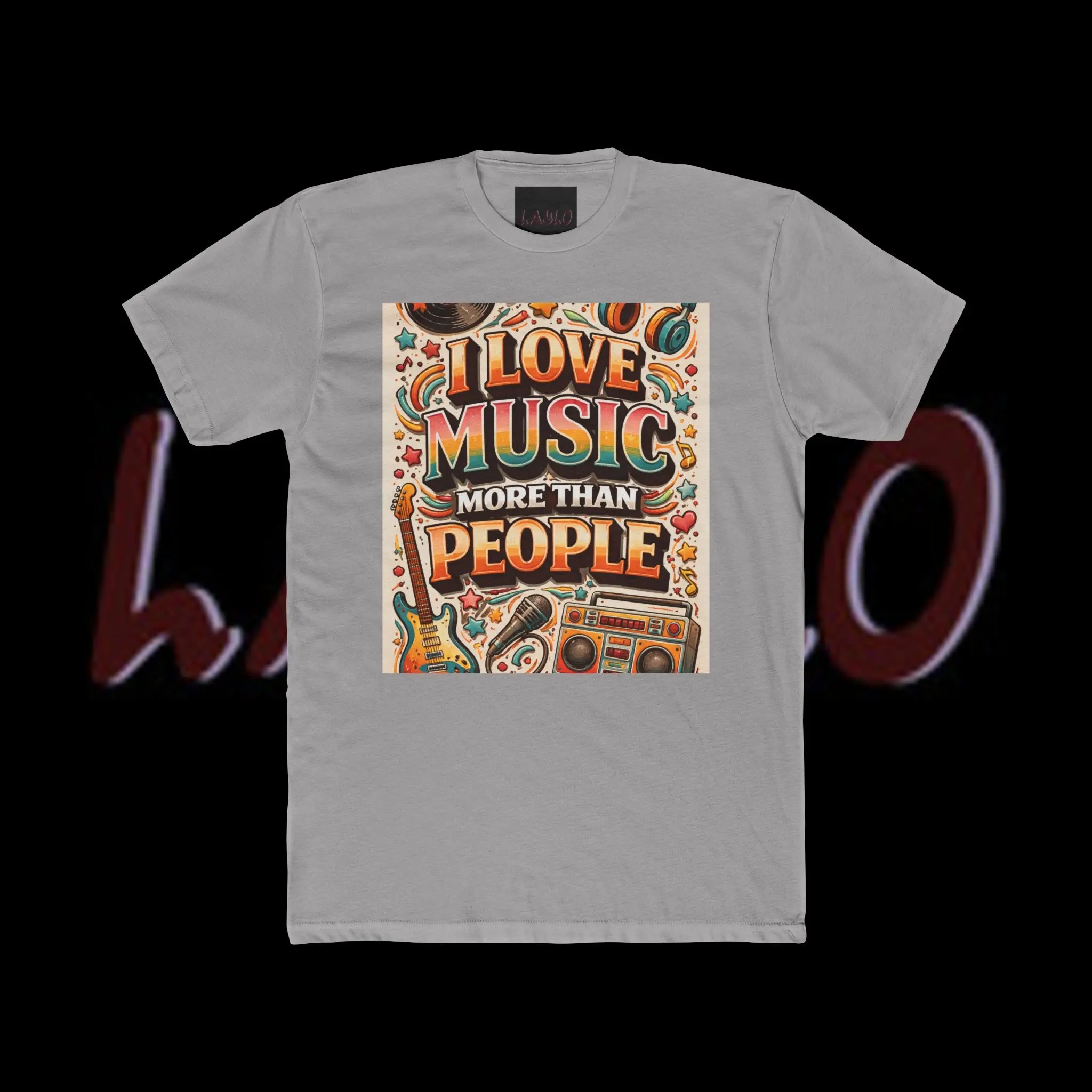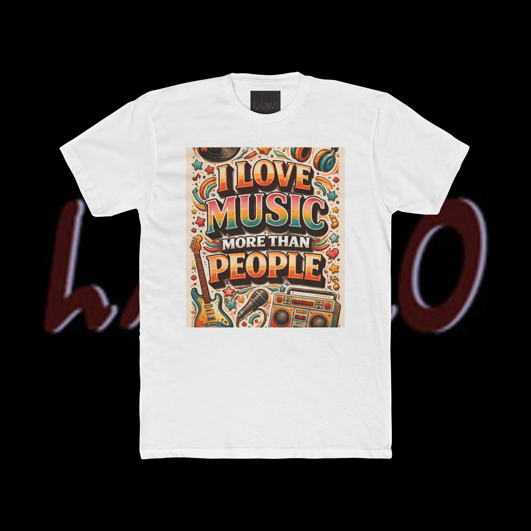 This lightweight cotton crew tee carries a bold, vintage-inspired music print that speaks straight to the heart of anyone who lives for sound. The front artwork bursts with retro guitars, speakers and warm, hand-lettered type that reads “I LOVE MUSIC MORE THAN PEOPLE,” creating a playful, honest statement piece. Wear it to practice sessions, record-store hangs, late-night jam sessions, or coffee-shop writing mornings — it layers easily under a denim jacket or stands out on its own. The fabric feels soft against the skin while the structured details (ribbed collar, shoulder tape and side seams) keep the shirt looking tidy wash after wash. For adults who measure life in riffs and playlists, this tee blends comfort with personality and keeps your fandom visible without trying too hard.