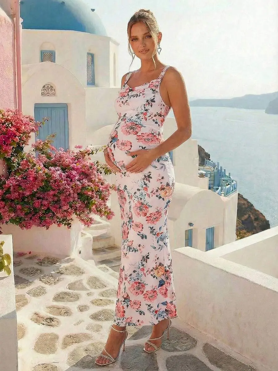 ADORIA Elegant Floral Print Mermaid Maternity Dress For Summer