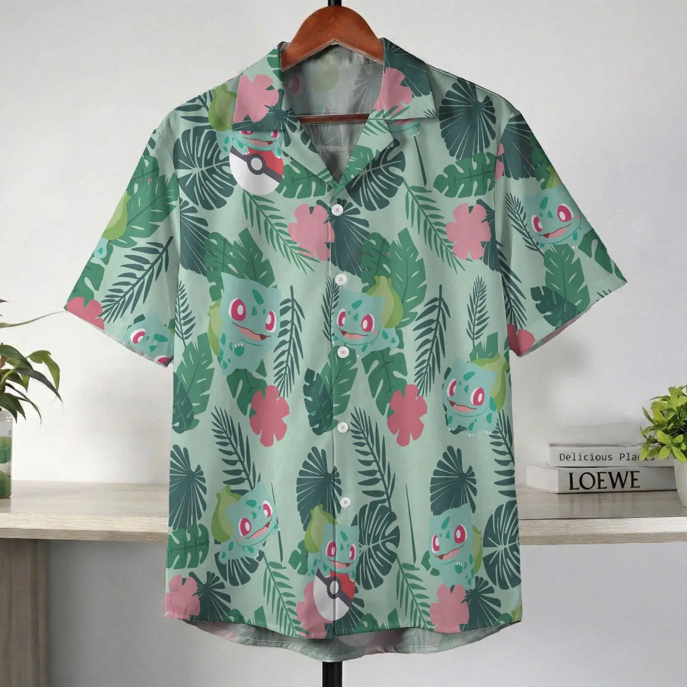 BulbasaurCute Tropical Green Hawaii Shirt, Aloha Shirt, Tropical Vibe, Anime Hawaiian Shirt for Fans #alohashirt #hawaiianshirt #tropicalvibes #summeroutfit #beachwear #viraloutfit