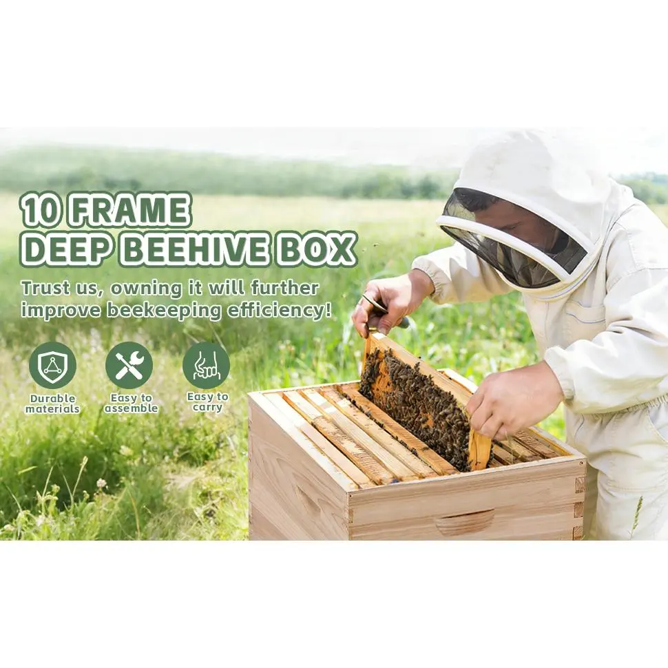10 Frame Deep Beehive Box,Langstoth Deep Brood Bee Hive Box, Include Beehive Frames and Waxed Foundations