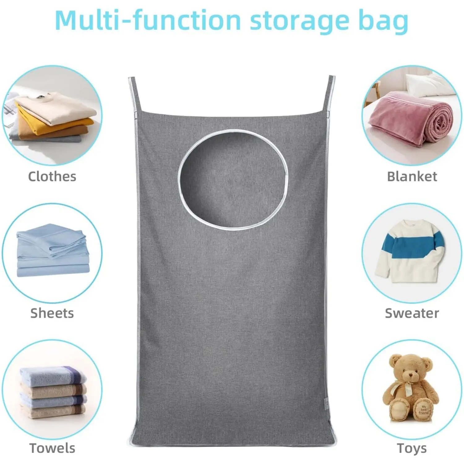 【Multi-Functional Organizer】 This hanging laundry bag is not just for storing dirty clothes but also helps you organize items like blankets, towels, socks, and toys. It's perfectly suited for use in bedrooms, bathrooms, living rooms, and dorm rooms.