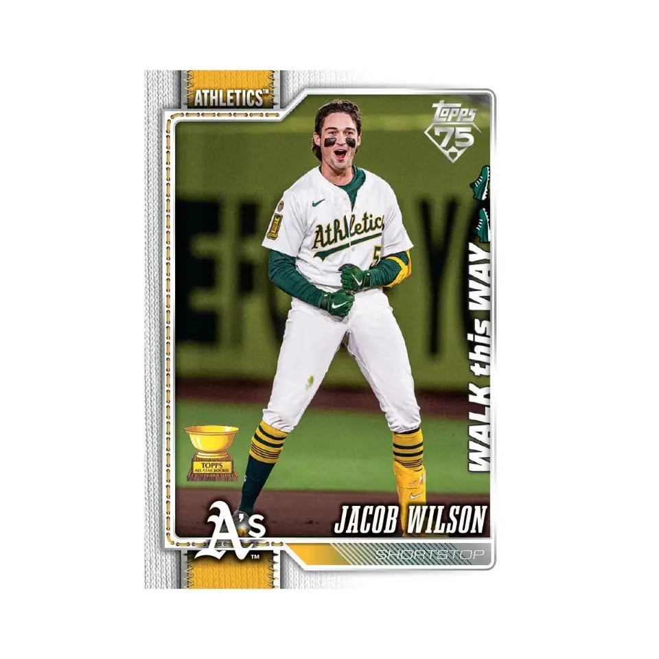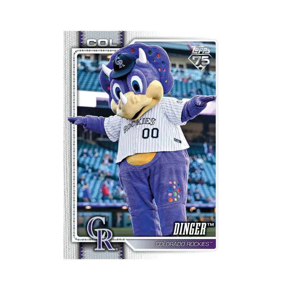 The Celebration Mega Box adds exclusive base card parallels and inserts. Returning favorites include Dugout Peeks, Walk this Way, and Gameday Drip, alongside trading cards highlighting team mascots.