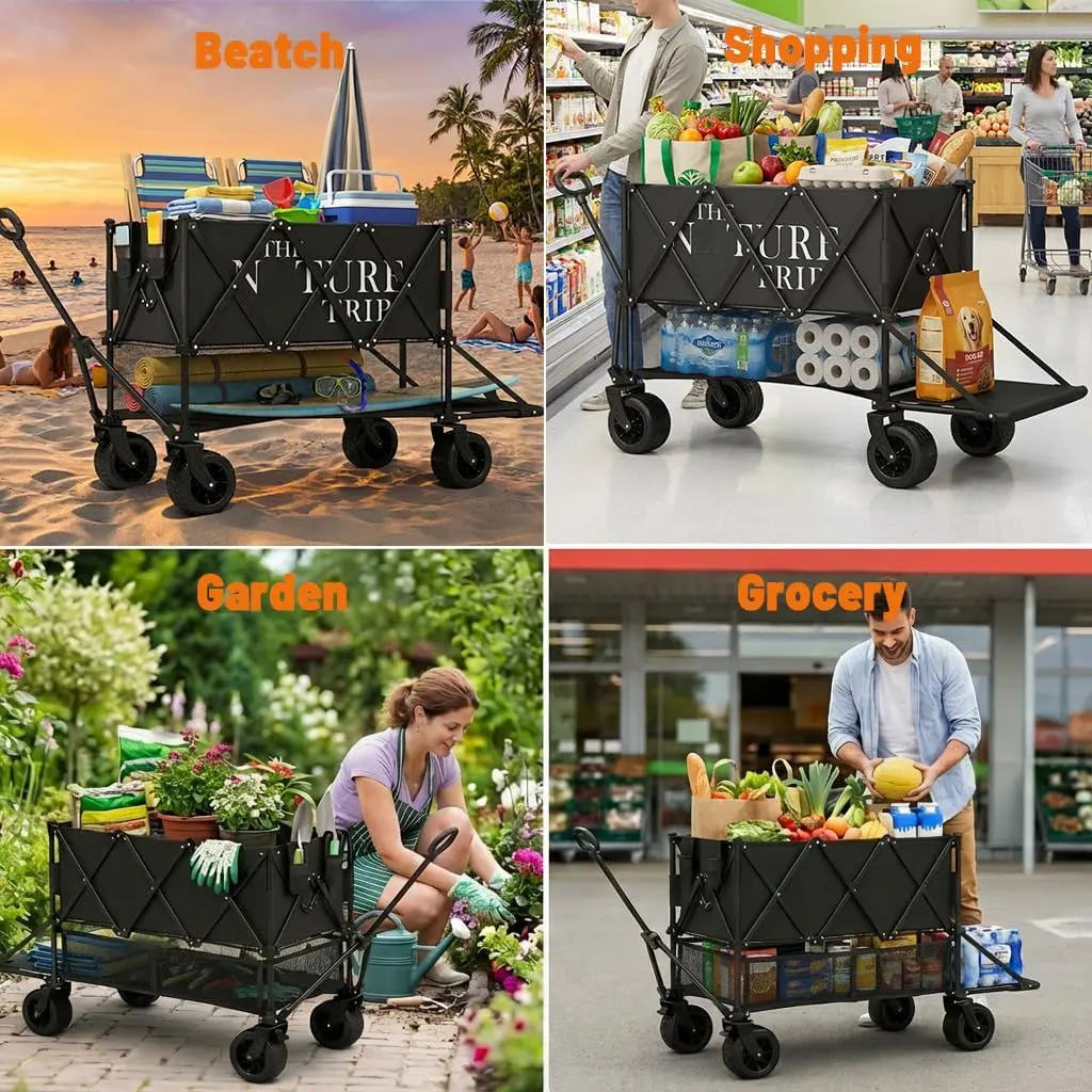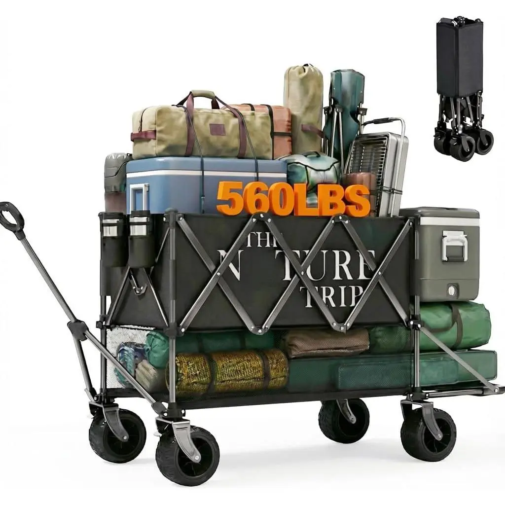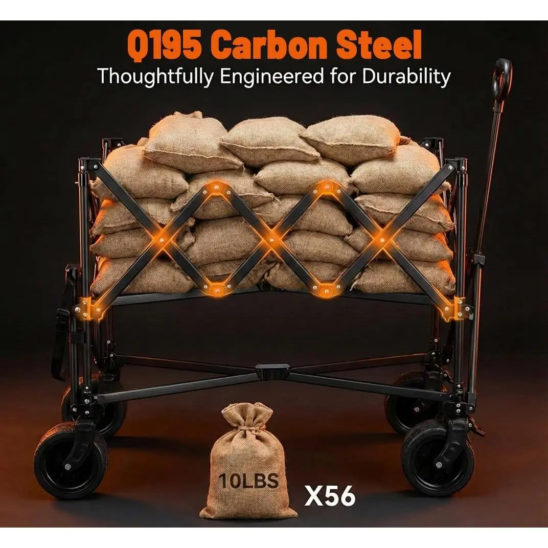 560lb Double Decker Wagon, 400L Large Capacity Folding Wagon with Brakes, Extra Long Extender Wagon Cart, All-Terrain Big Wheels for Camping, Sports, Shopping