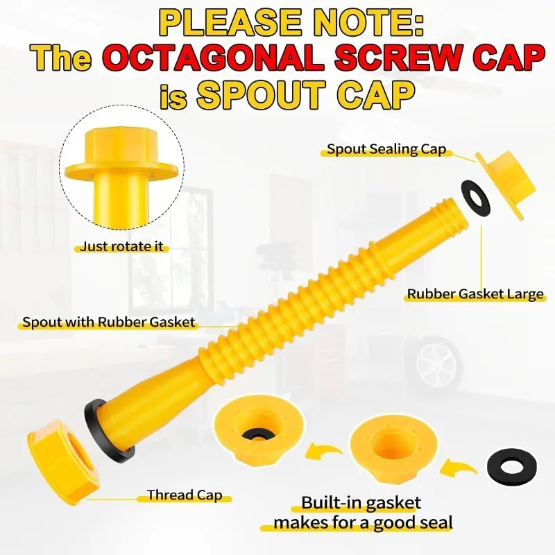 5 kit Yellow Gas Can Spout Replacement, Gas Can Nozzle, Flexible Pour Nozzle Suitable for Most 1/2/5/10 Gal Oil Cans, Fuel Can Spout Replacement with SCEPTER, MIDWEST, AMERI-CAN, PLASTIC EAGLE PG5 & KP SERIES