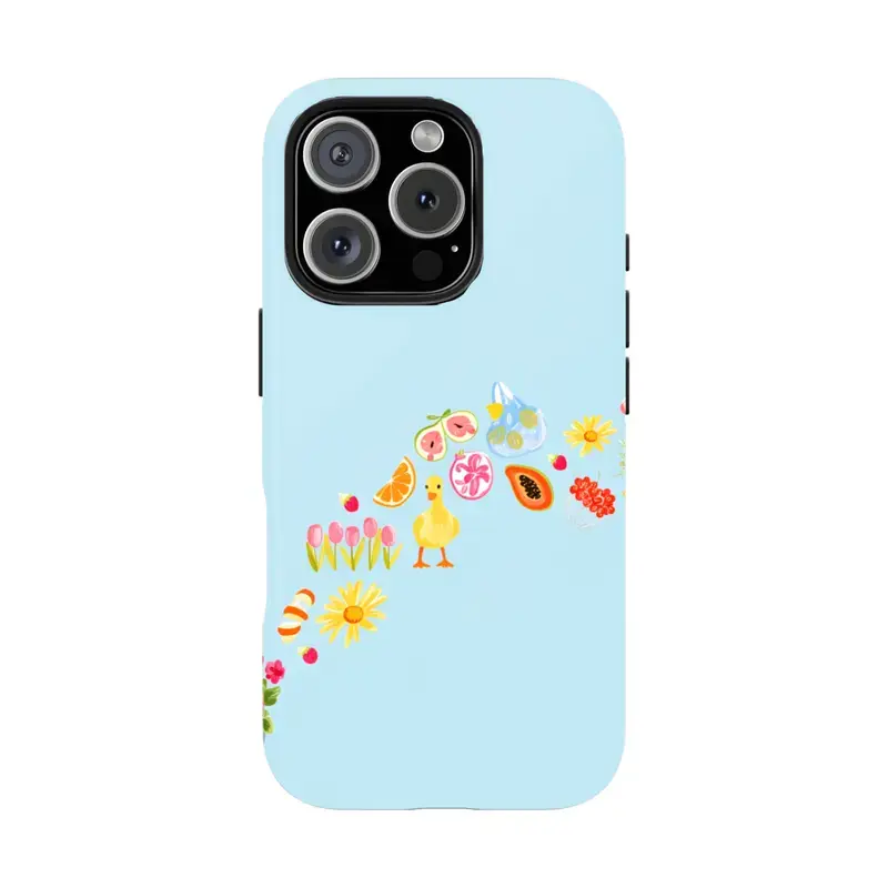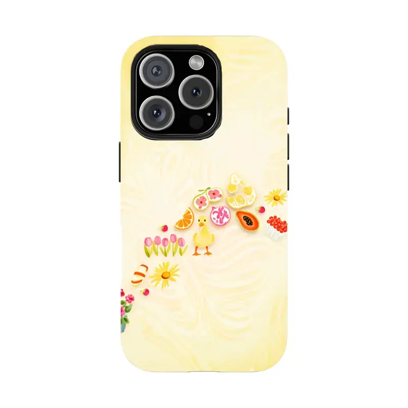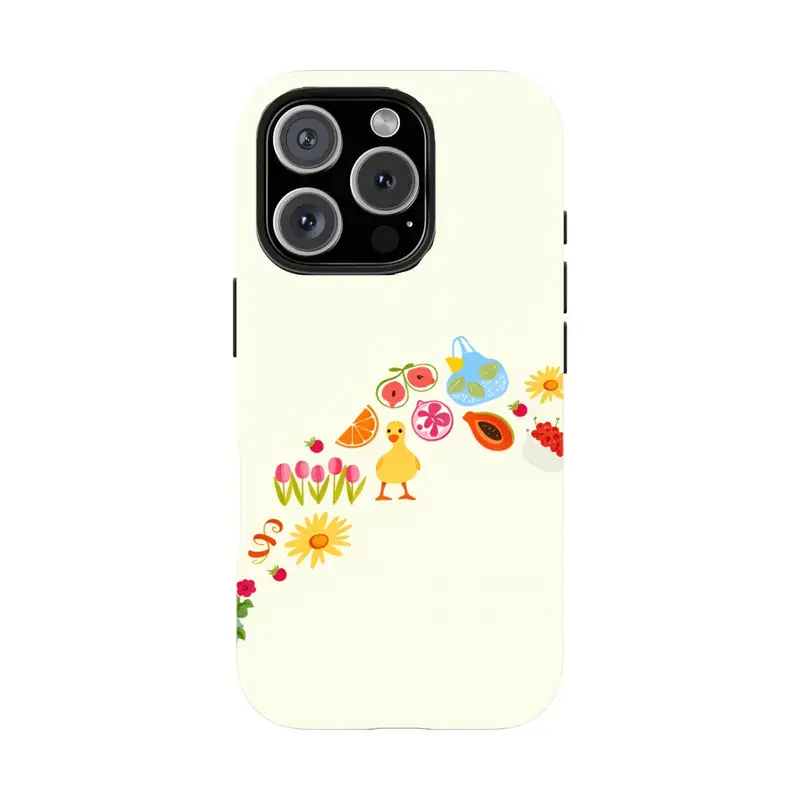 Cute Duck Case Cottagecore Aesthetic Phone Cover with Flowers, Fruits & Summer Market Design Cover for iPhone 17 Pro Max 16 15 Plus 14 13 12 11 Plus