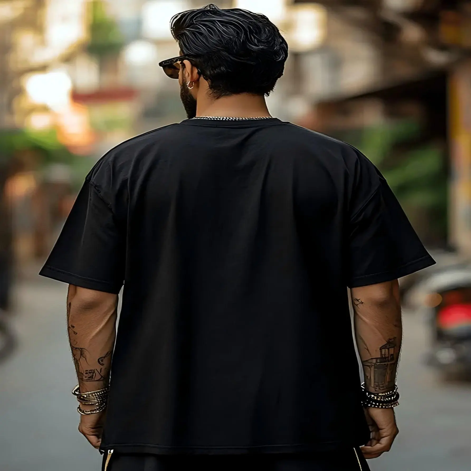 Black T-Shirt: The 220g fabric offers a solid texture and soft feel. Available in sizes S–5XL to fit most body types, featuring a classic round neck design perfect for casual daily wear.
