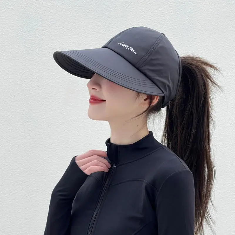Empty top sunscreen hat outdoor ponytail half-empty top large brim quick-drying duck tongue sun hat embroidery characters