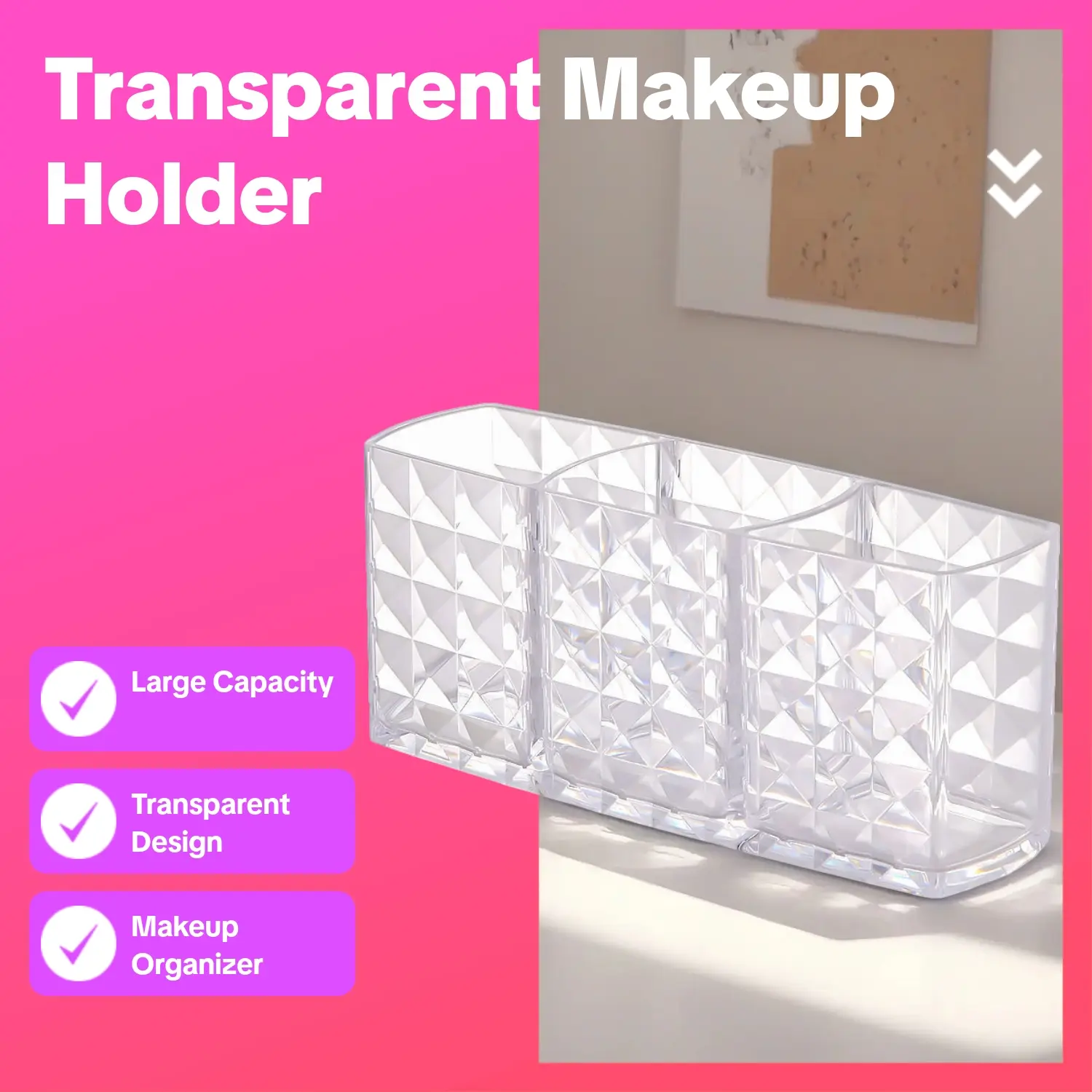 Transparent Makeup Brush Organizer, Large Capacity Cosmetic Storage Box, Modern Design for Vanity and Bathroom, Elegant and Functional