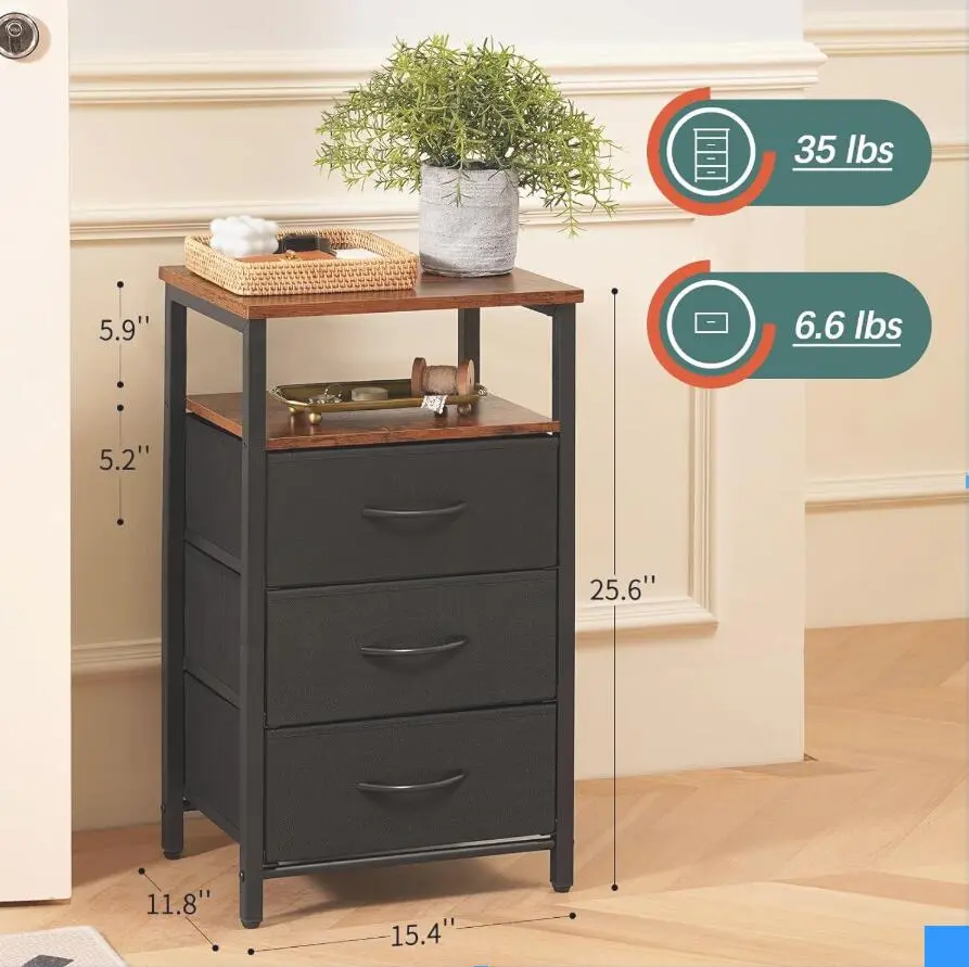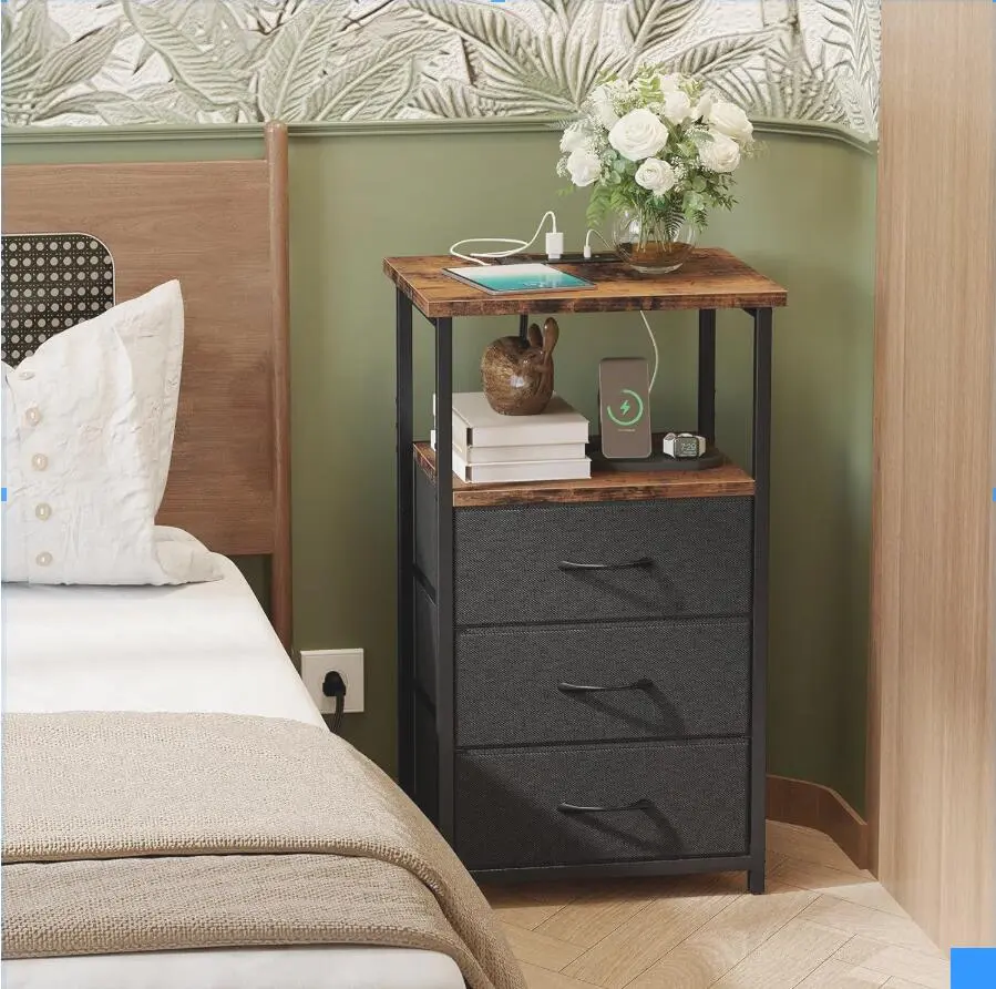 Compact End Table with Drawers Slim Sofa Side Table – Space-Saving & Stylish Multi-Layer Storage for Small Spaces