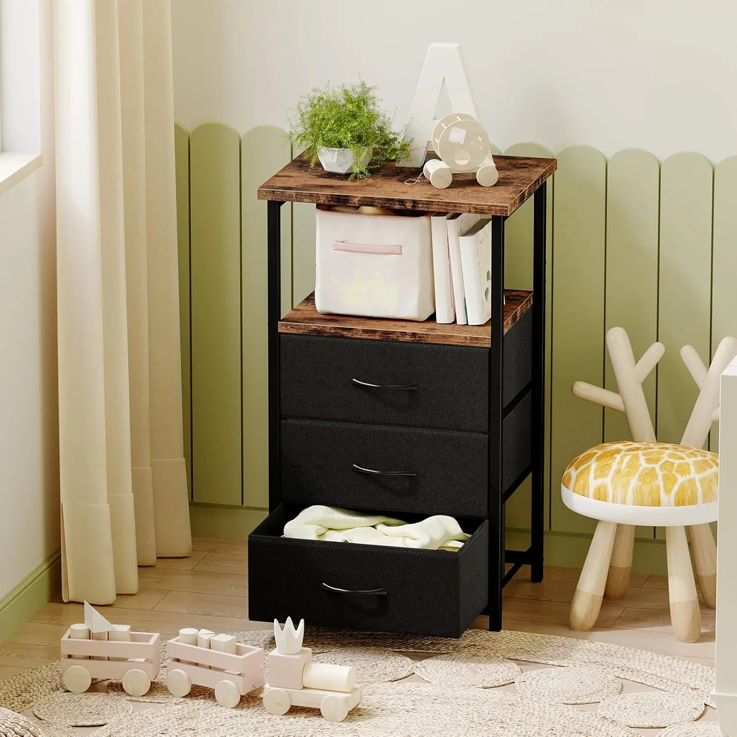 【New Color】Dresser for Bedroom, Storage Drawers,Skinny Fabric Storage Tower with 4 Drawers,Tower Organizer Unit,Chest of Drawers with Wooden