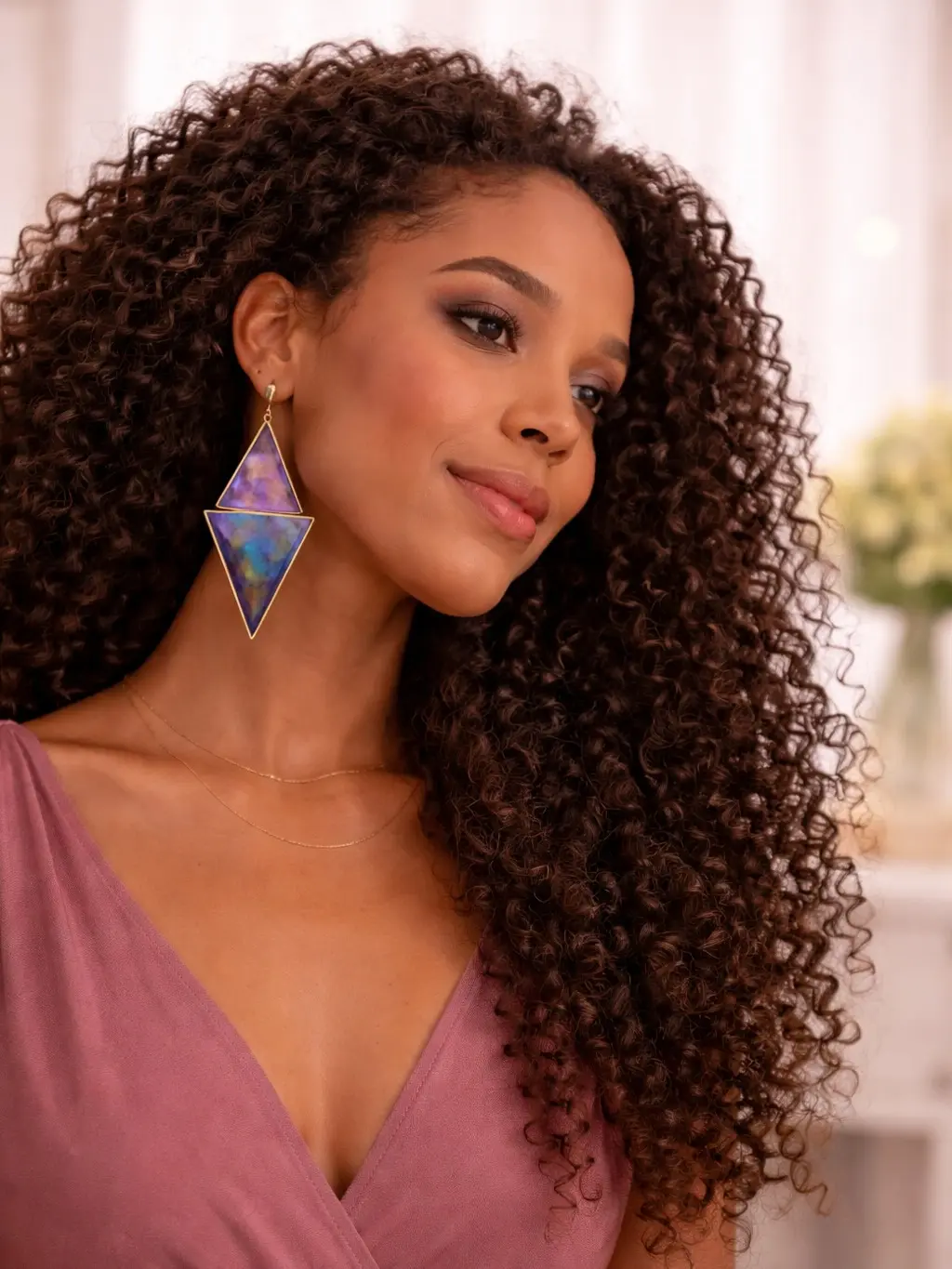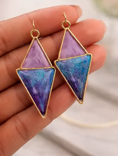 Turn heads with these one-of-a-kind Aurora Prism earrings, designed to catch the light from every angle. Featuring a bold geometric shape with layered tones of purple, blue, and iridescent shimmer, these earrings bring a modern, artistic edge to your look.