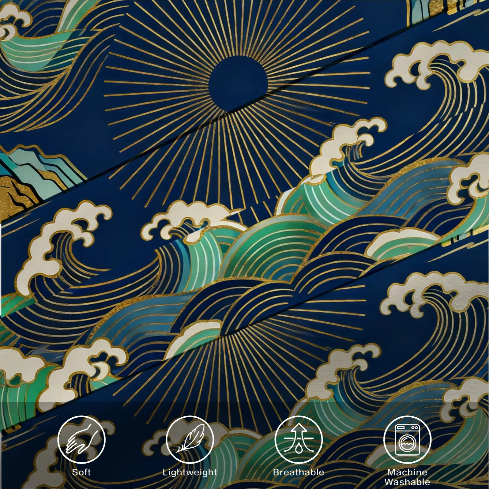 【HD Digital Print】: Features high-definition digital printing for vibrant wave and sun patterns, enhancing visual appeal.