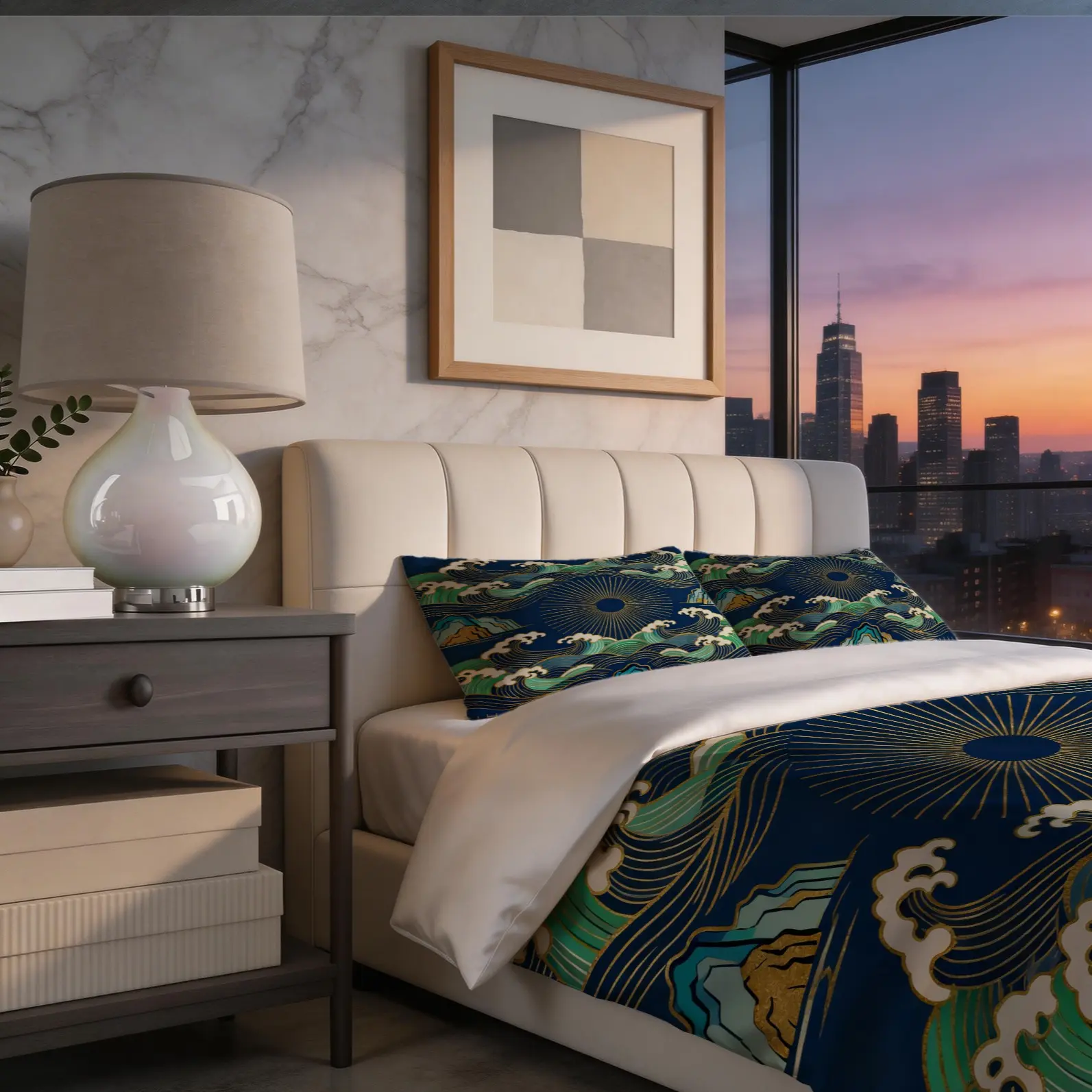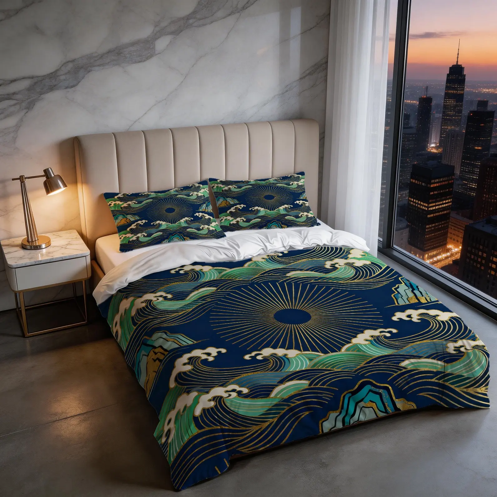 5. 2/3 Piece Wave Sun Duvet Cover Set, HD Digital Printed Comforter Cover, Soft Breathable Bedding Set for Guest Room Bedroom Decor (No Insert)