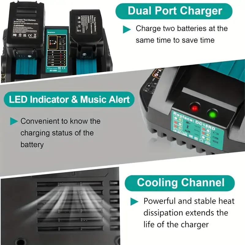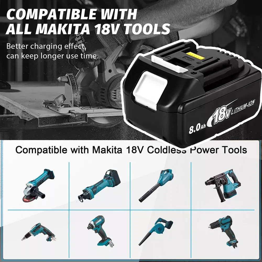 Compatible with Makita 14.4V-18V Lithium Battery.