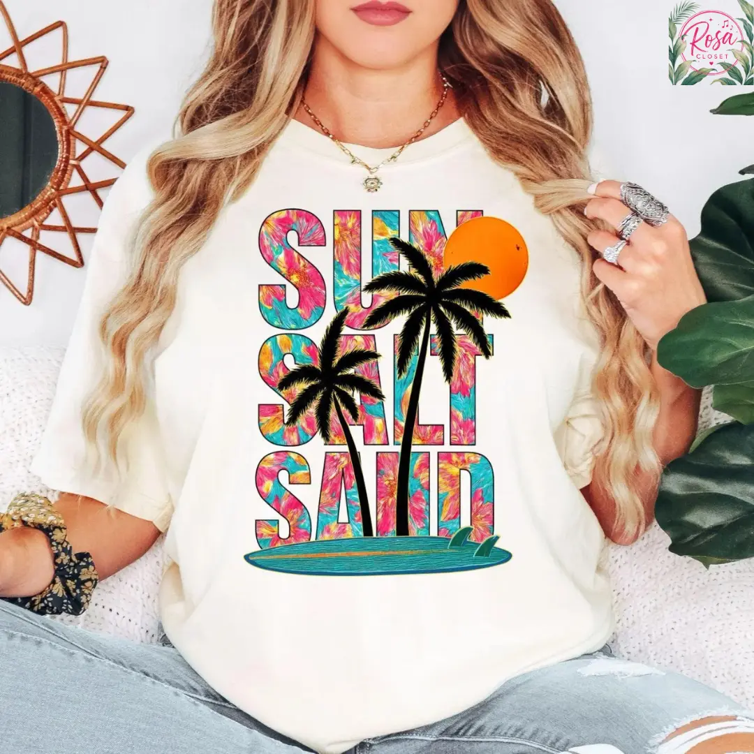 Comfort Colors Beach Summer Shirt, Sun Salt Sand Shirt, Tropical Vacation Tee, Coastal Graphic Tee, Palm Tree Shirt, Ocean Beach Shirt