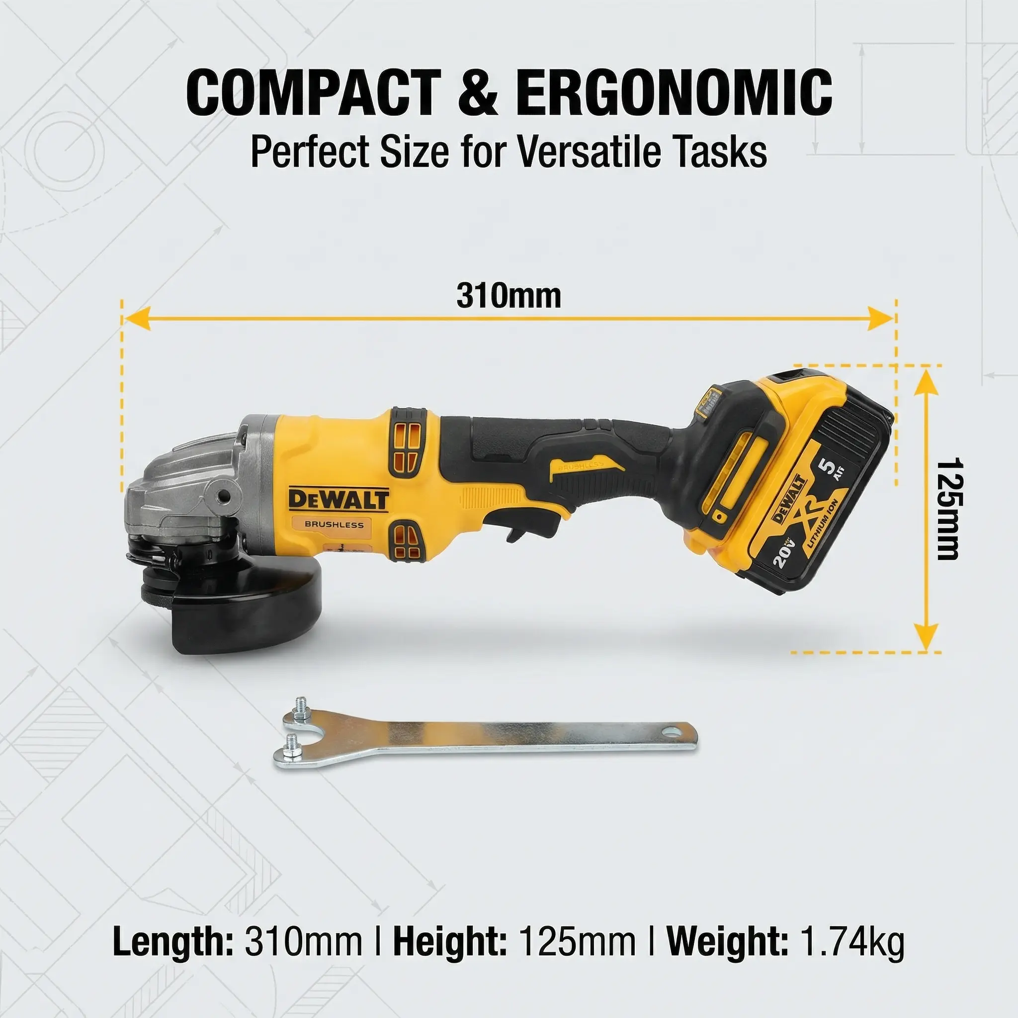 Dewalt DCG405-125 20V Grinder Bundle: Side Slide Switch, 6mm Wheel Thickness, One Battery & Charger