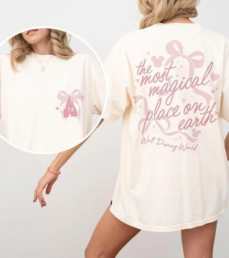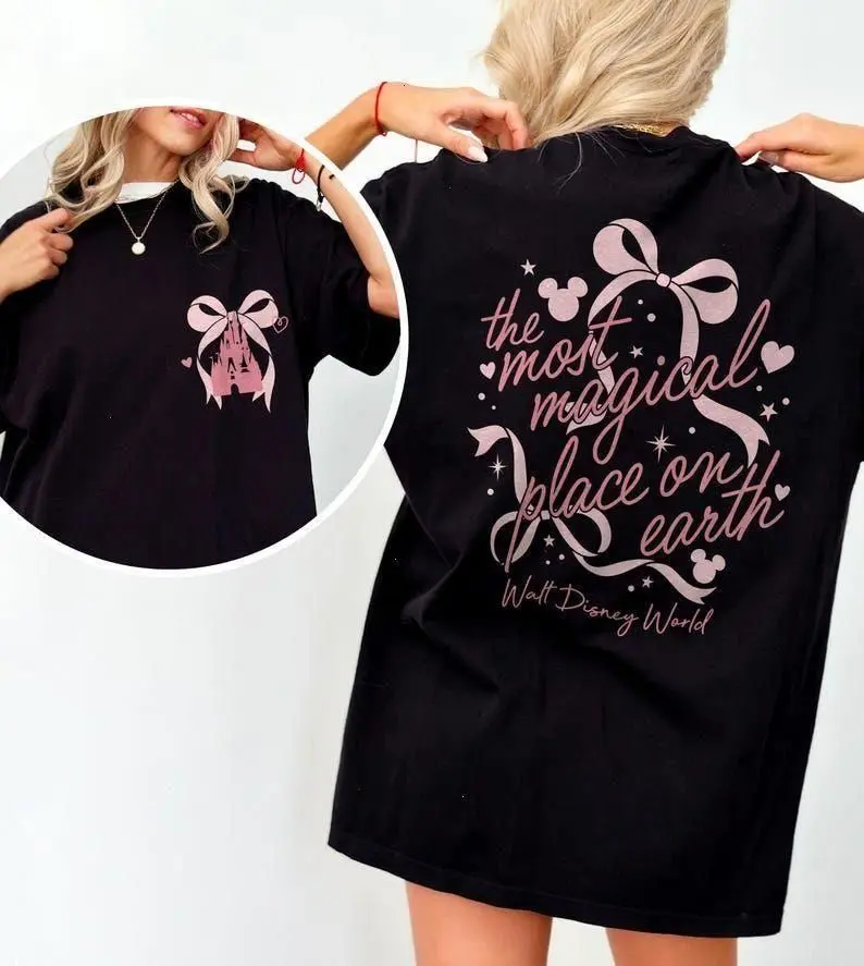Vintage Castle Coquette Bow 2 Side Shirt, The Most Magical Place On Earth Tee, Magic Kingdom, Walt DisneyWorld Family Trip Shirt