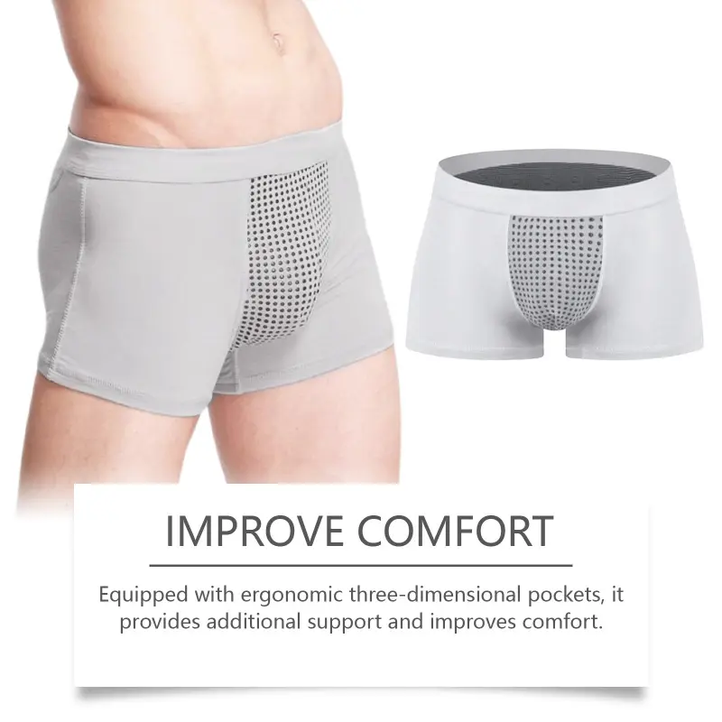 Our men's slim-fit underwear contains 94% polyester fiber and 6% spandex. It features an ergonomic three-dimensional pocket that provides extra support and enhances comfort. It is very easy to use: just wear it like regular underwear. It also offers a soft touch and increases comfort