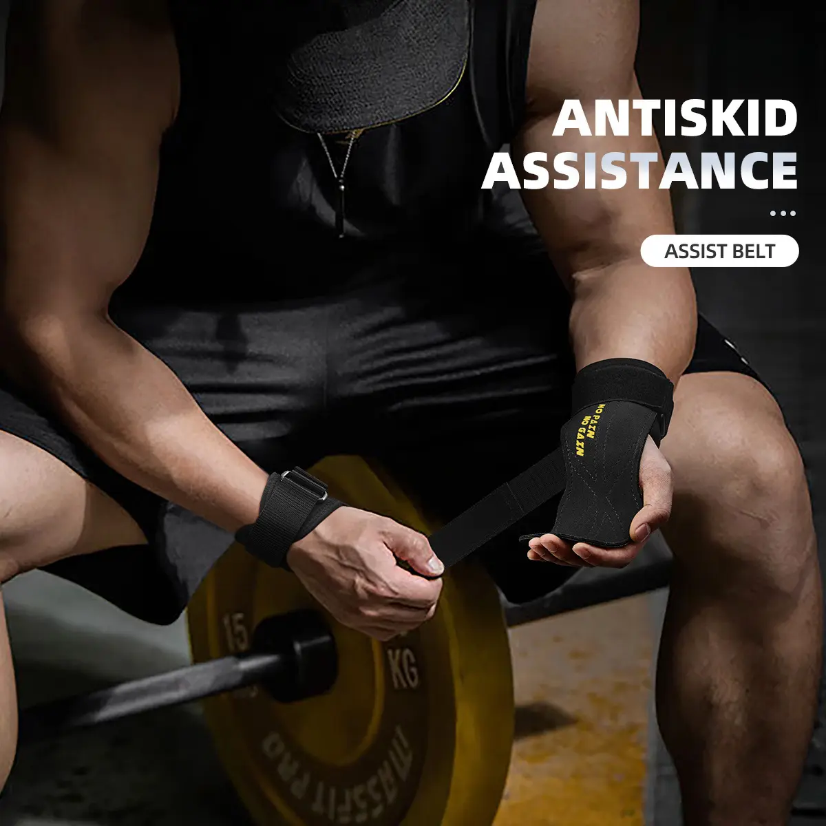 Deadlift and pull-up assist strap, double-layer thickened leather hand protector for fitness, non-slip and wear-resistant wrist support for equipment, unisex wrist support assist strap for powerlifting and strength training