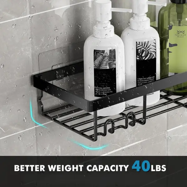 Shower Caddy Shelf Organizer, Self Adhesive Bathroom Wall Storage Rack, No Drill Shower Shelves Basket, Black Bathroom Organizer for Home RV Apartment