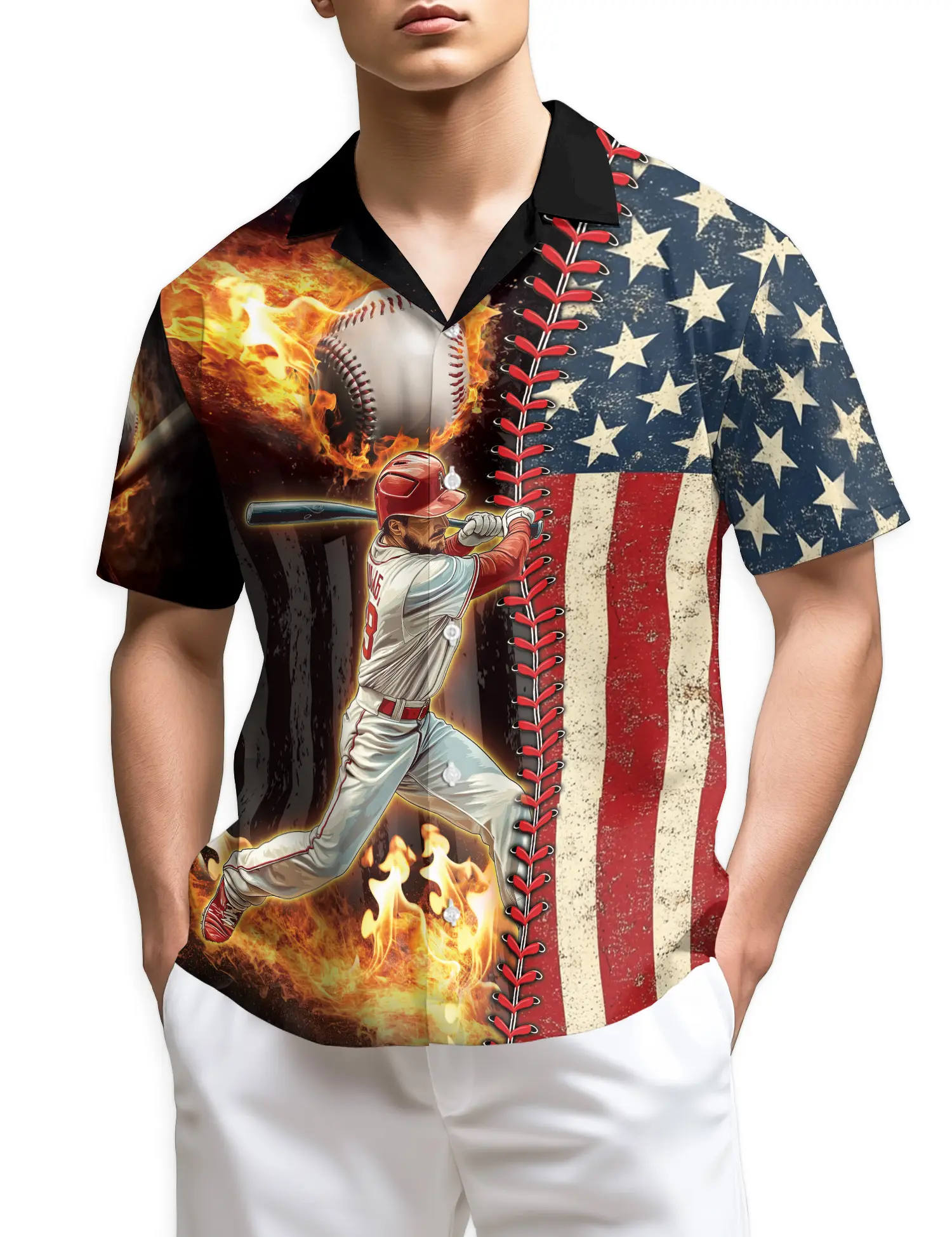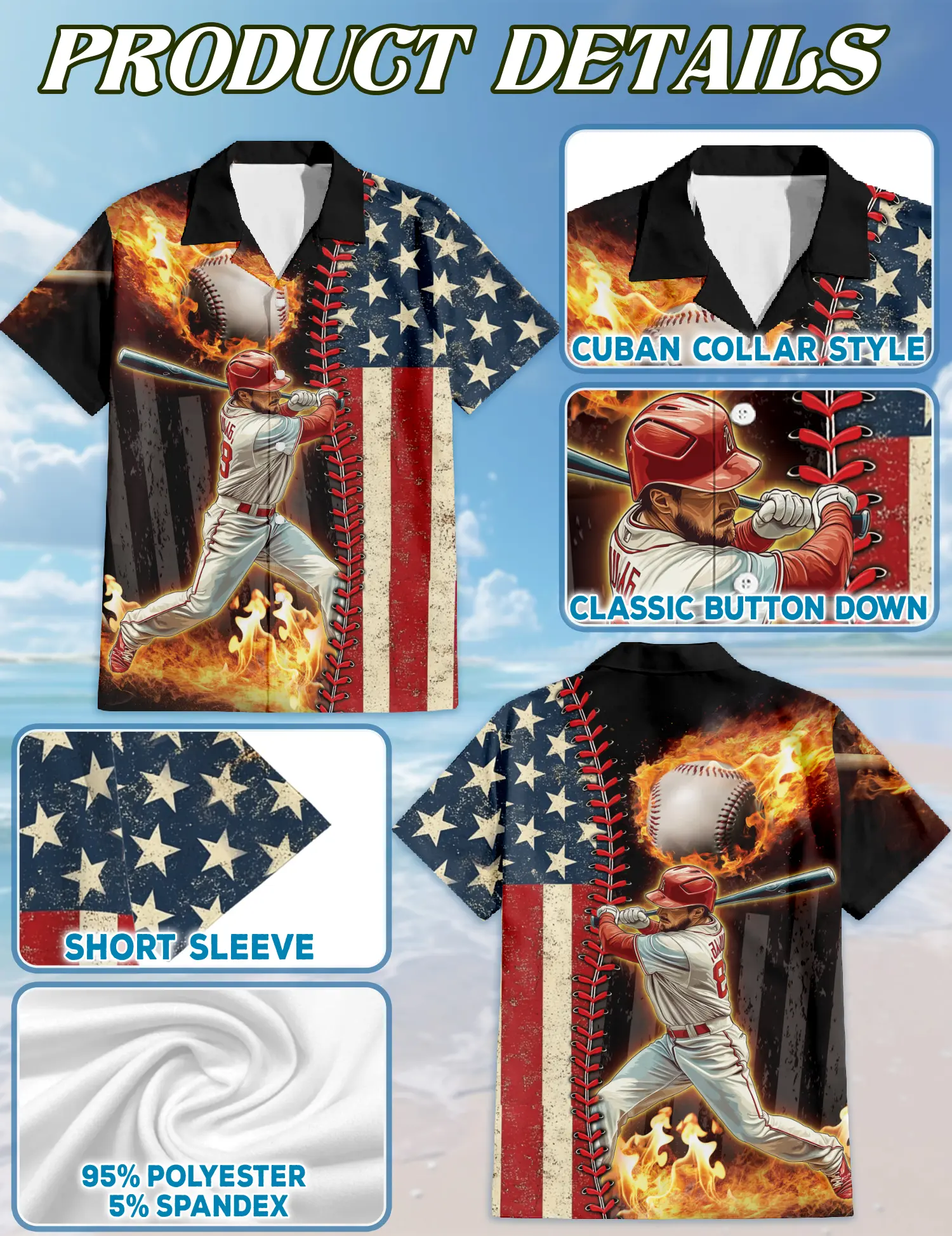 5. Baseball American Flag 3D All Over Printed Hawaiian Shirt, Button Down Short Sleeve Pattern Hawaiian Shirt Man