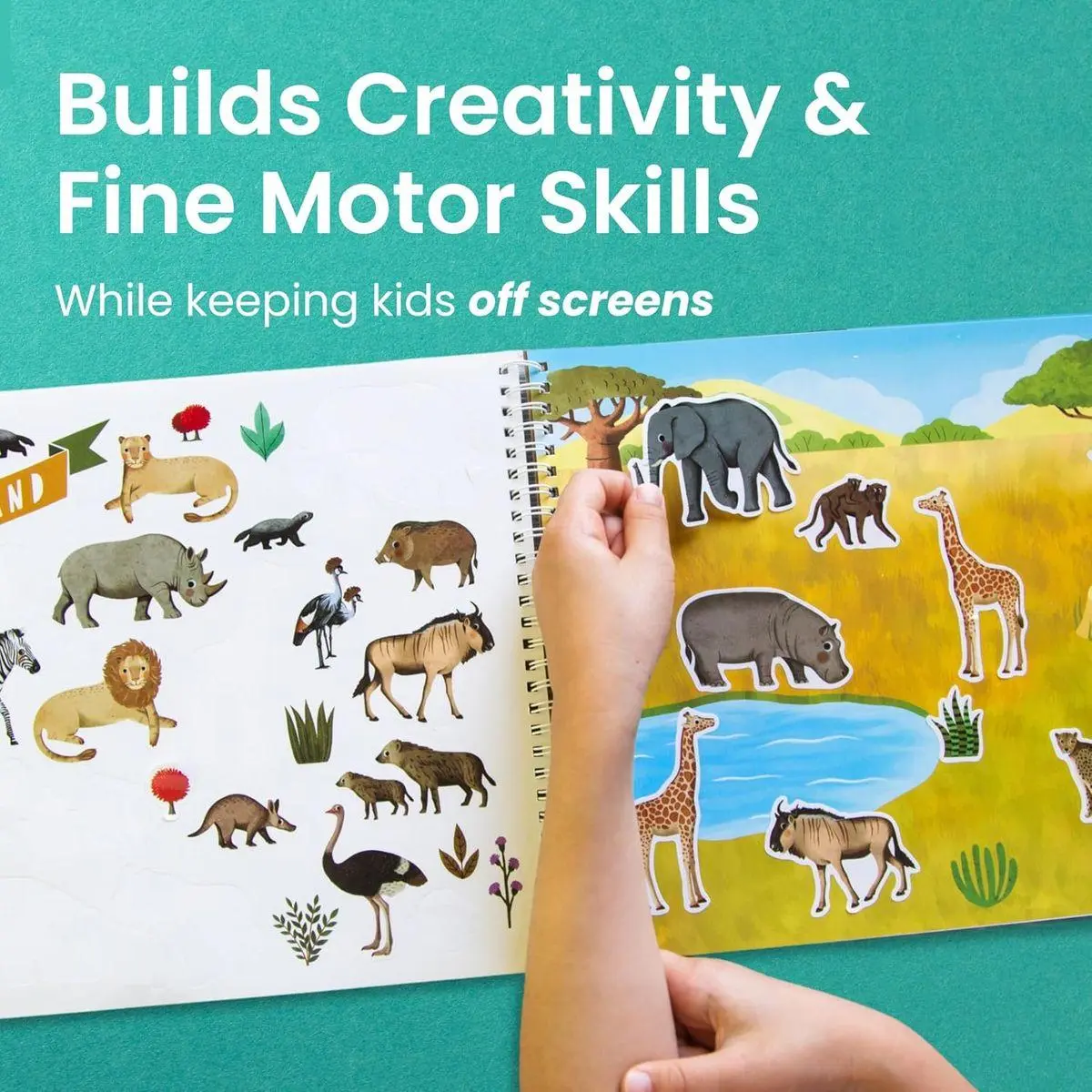The ORIGINAL LAY-FLAT STICKER BOOK: We created the side-by-side sticker pages & scenes with tiny hands in mind. The spiral binding allows for more time creating and less time flipping back and forth. Your kids will stay busy for hours crafting different scenes with these easy-to-peel stickers. Our spiral-bound sticker and coloring activity books are perfect for ages 2-4 and beyond!