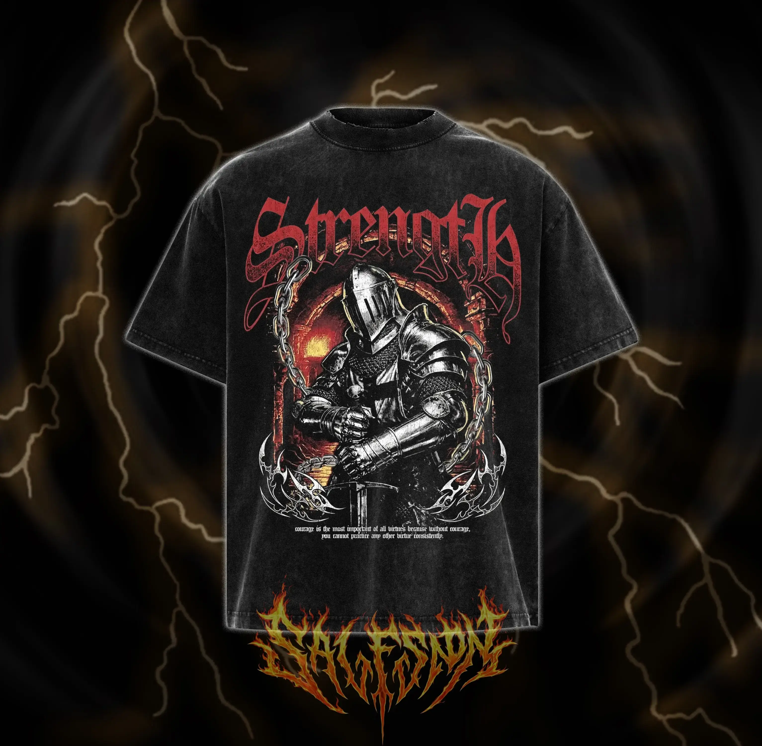 Strength Knight Oversized Graphic Tee Heavyweight Crewneck Sweatshirt Muscle Tank Top Vintage Grunge Streetwear Aesthetic Dark Knight Armor Gym Pump Cover For Men Women 172 Chars