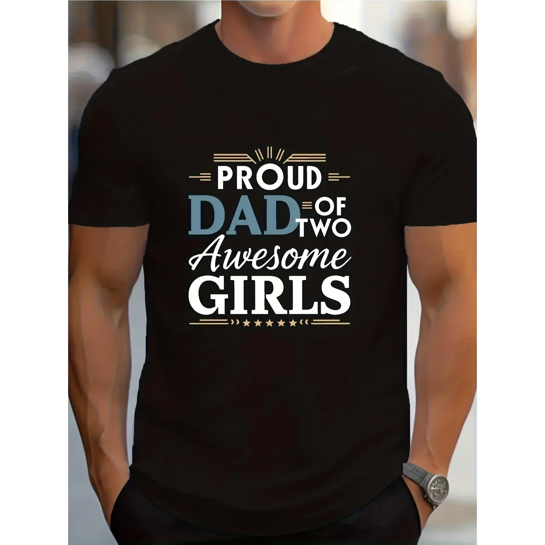 1 Graphic T-Shirt "Proud Dad of Two" and Parenting - 100% Cotton, Crew Neck, Short Sleeve, Casual T-Shirt for Father's Day, Valentine's Day Gift, Unisex Sizes for Comfortable Wear in All Seasons
