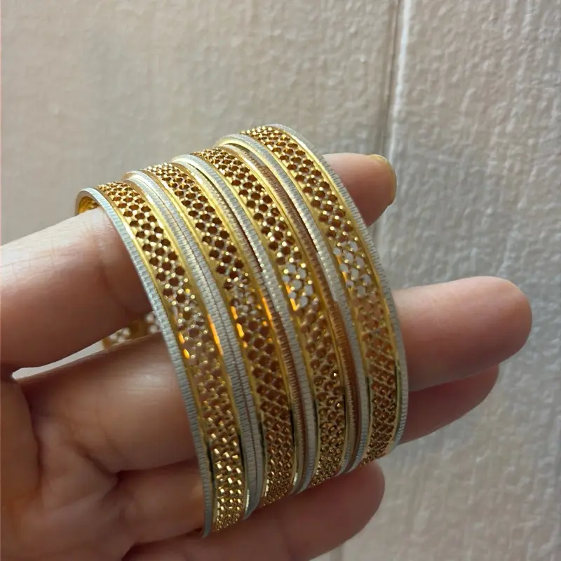 Two Toned Gold Plated Bangles - 4 Piece Traditional Look with Modern Touch. Intricate & Elegant Design for Special Occasions. Gold Plated Bengal Jewelry Set Trendy Jewellery Accessories Trendy Fashionable Accessories