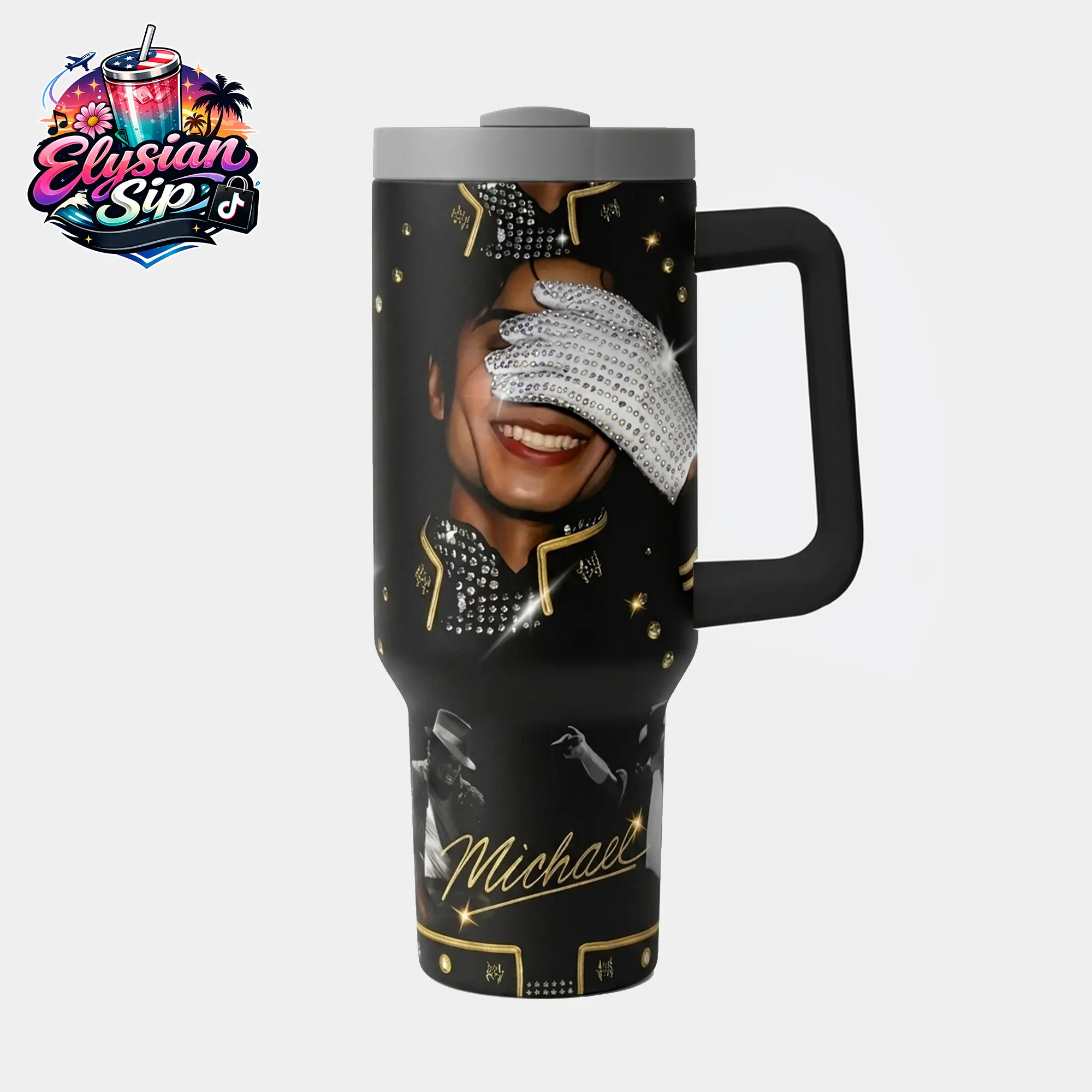 [Collection] Elysian Sip - Michael Movie Series 40oz Tumbler High-Quality Insulated Tumbler, Michael Jackson Biopic Film Theme Tumbler With Handle, King of Pop Fan Gift Tumbler, Leakproof Travel Mug.