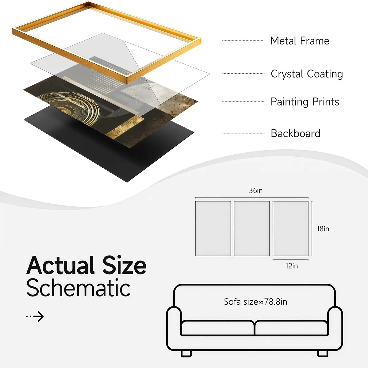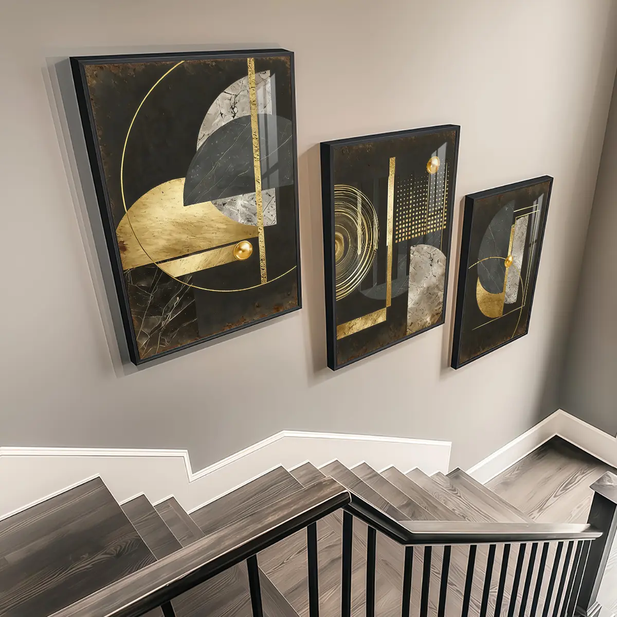 3 Counts Aluminum Alloy Framed Painting, Geometric Gold And Black Abstract Art Pictures, Home Decoration For Living Room, Bedroom, Office, Restaurant, Hallway Wall Decor, Odorless Print Artwork, Luxury Perfect Gift For Friends And Family