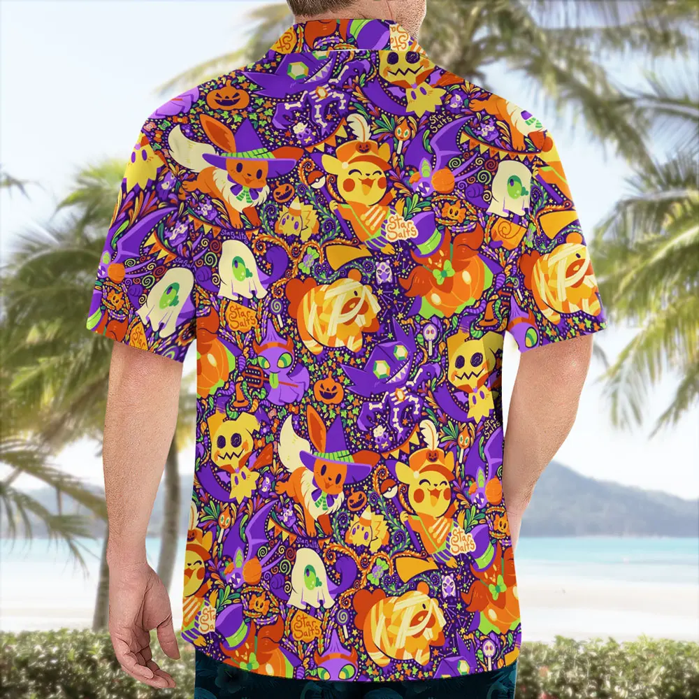 5. Halloween Party Shirt – EeveeMimikyu Design, Aloha Shirt, Tropical Vibe, Anime Hawaiian Shirt for Fans #alohashirt #hawaiianshirt #tropicalvibes #summeroutfit #beachwear #viraloutfit
