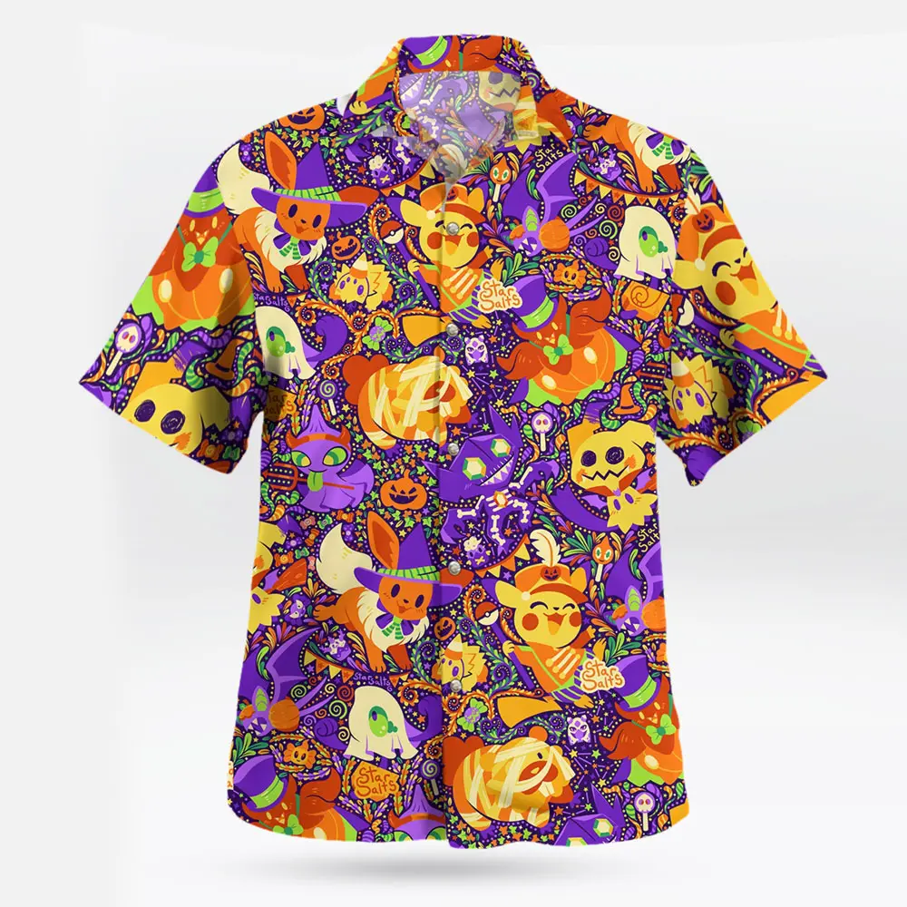 Halloween Party Shirt – EeveeMimikyu Design, Aloha Shirt, Tropical Vibe, Anime Hawaiian Shirt for Fans #alohashirt #hawaiianshirt #tropicalvibes #summeroutfit #beachwear #viraloutfit