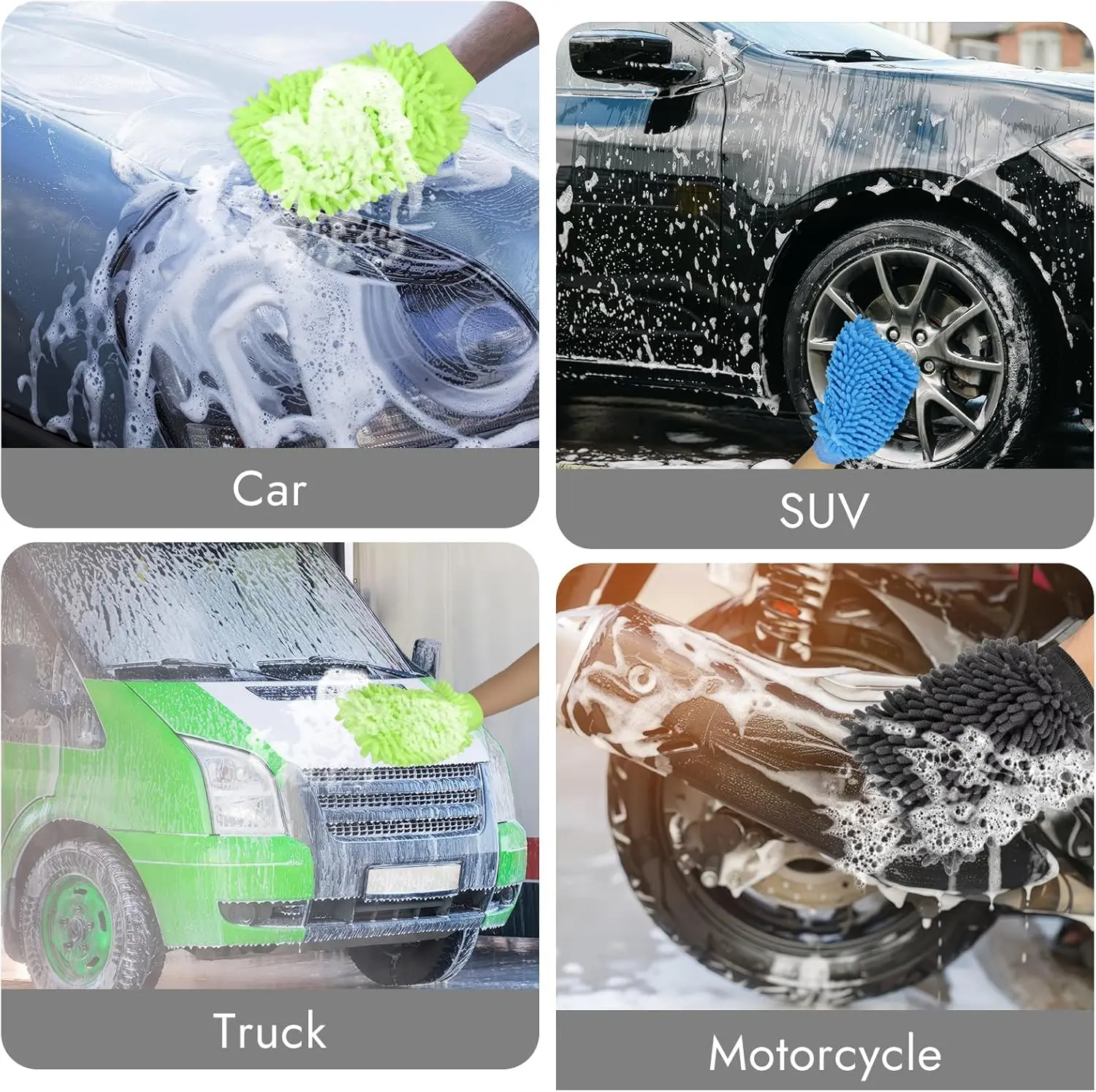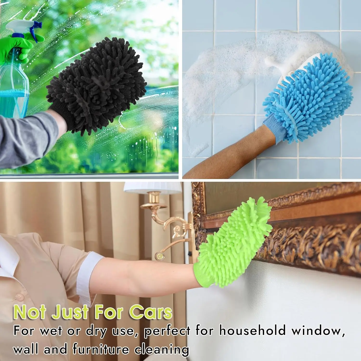 Chenille Microfiber Car Wash Mitt, Scratch-Free Cleaning Glove for Cars, Bikes, Glass, and Home Surfaces, Reusable Ultra Soft Detailing Mitt