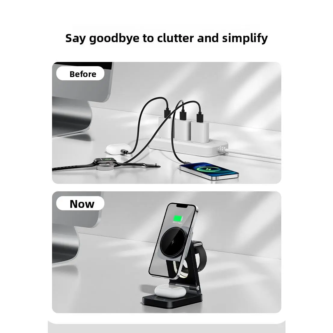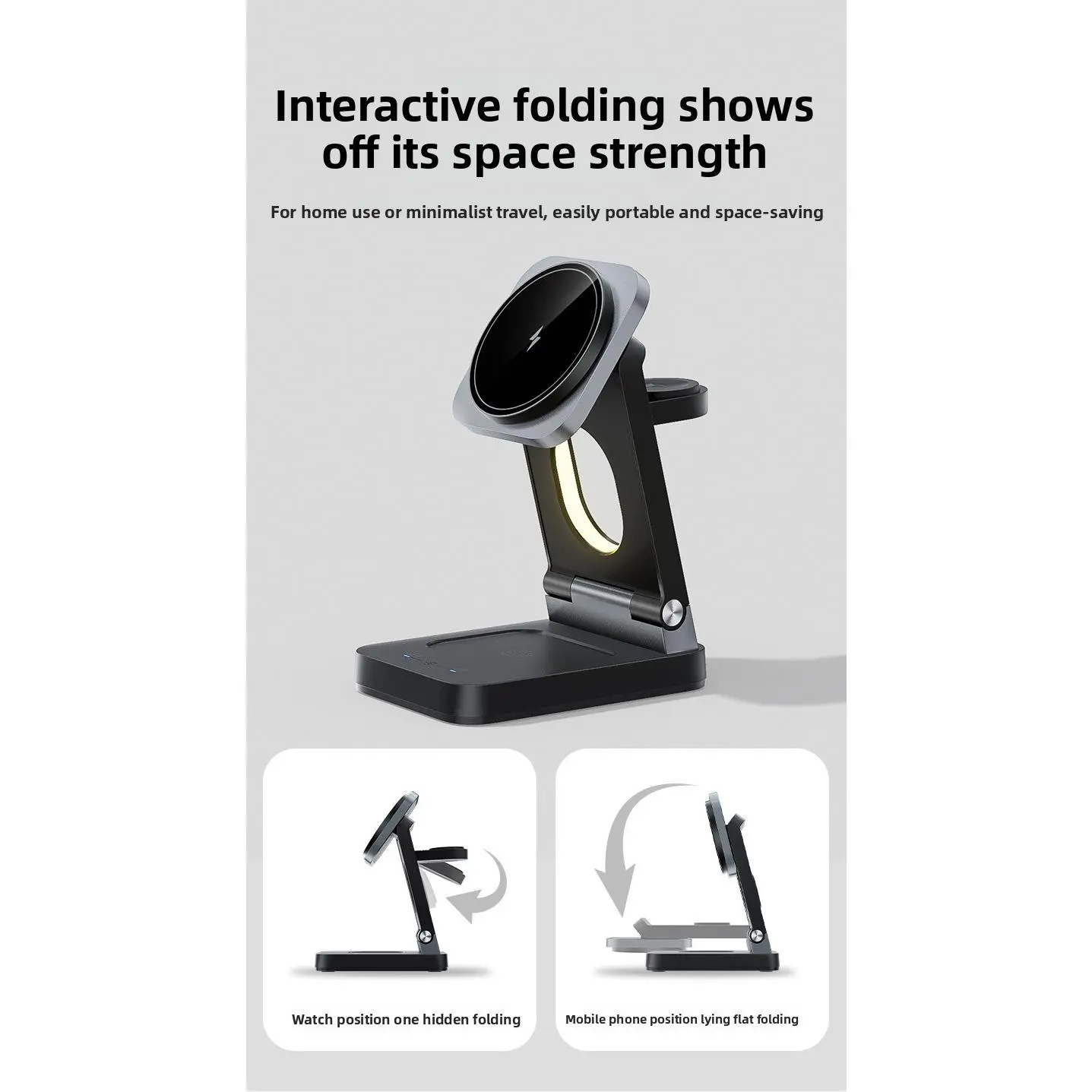 New foldable magnetic three-in-one wireless fast charger suitable for Apple phone stand wireless charging