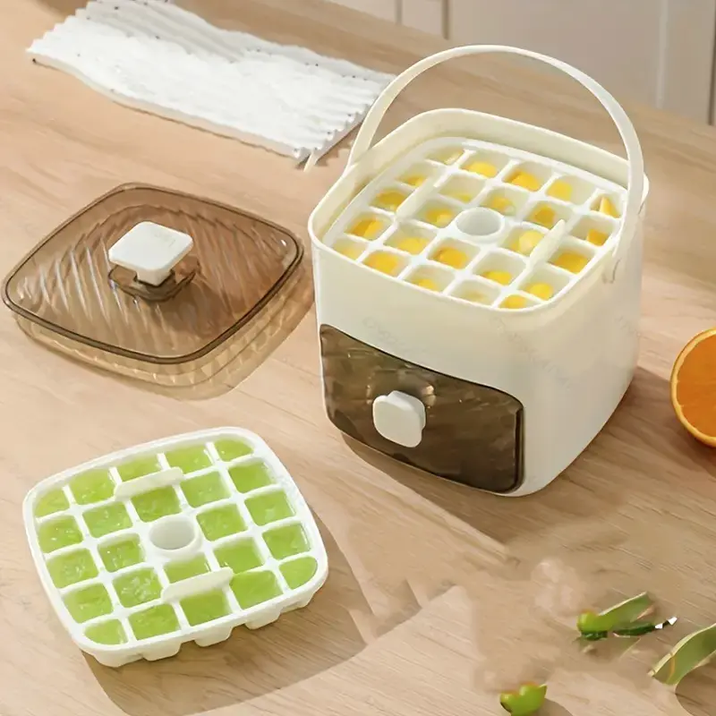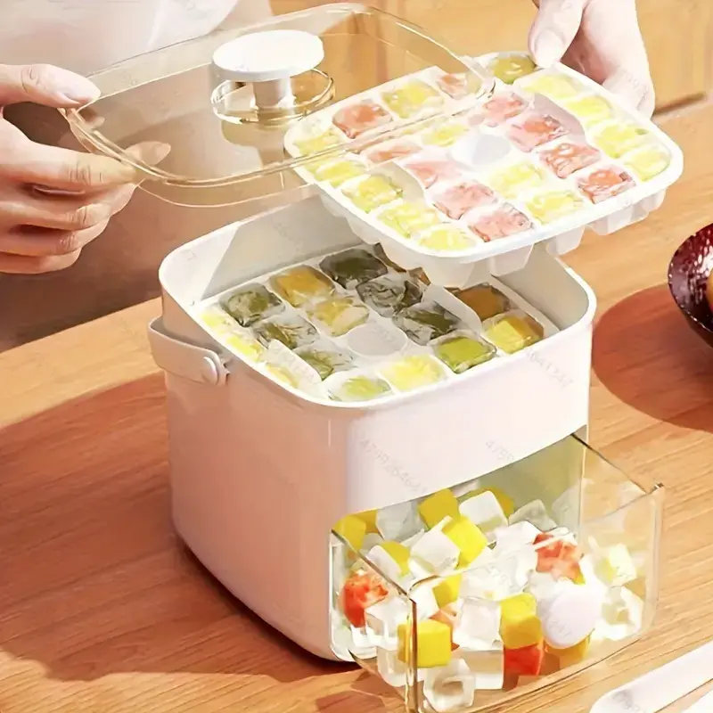 This ice cube maker is a simple and useful kitchen item for water, iced coffee, juice, soda, cocktails, and more. The built in handle makes it easy to carry, while the storage design helps keep your ice in one clean place. It is a smart choice for daily home use, summer drinks, and keeping your freezer more organized.