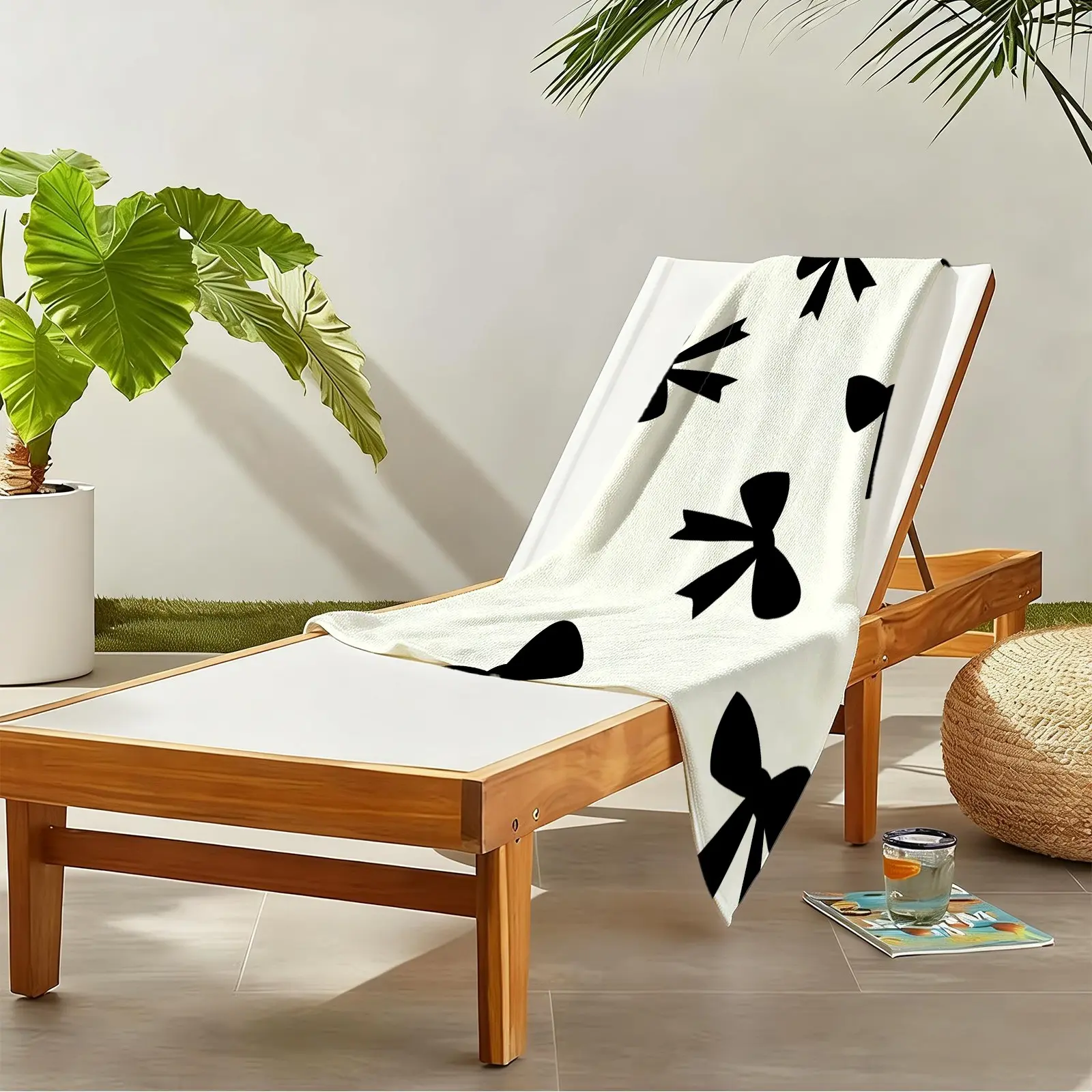 Ballet Core Bow Beach Towel, Cute Soft Skin-friendly Quick Dry, Available in Black White Blue Pink, Ideal for Girls Seaside Vacation Photoshoot