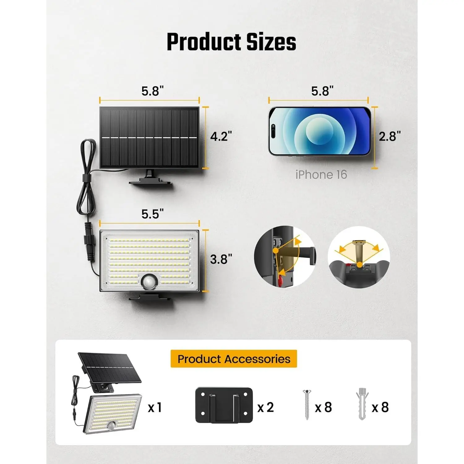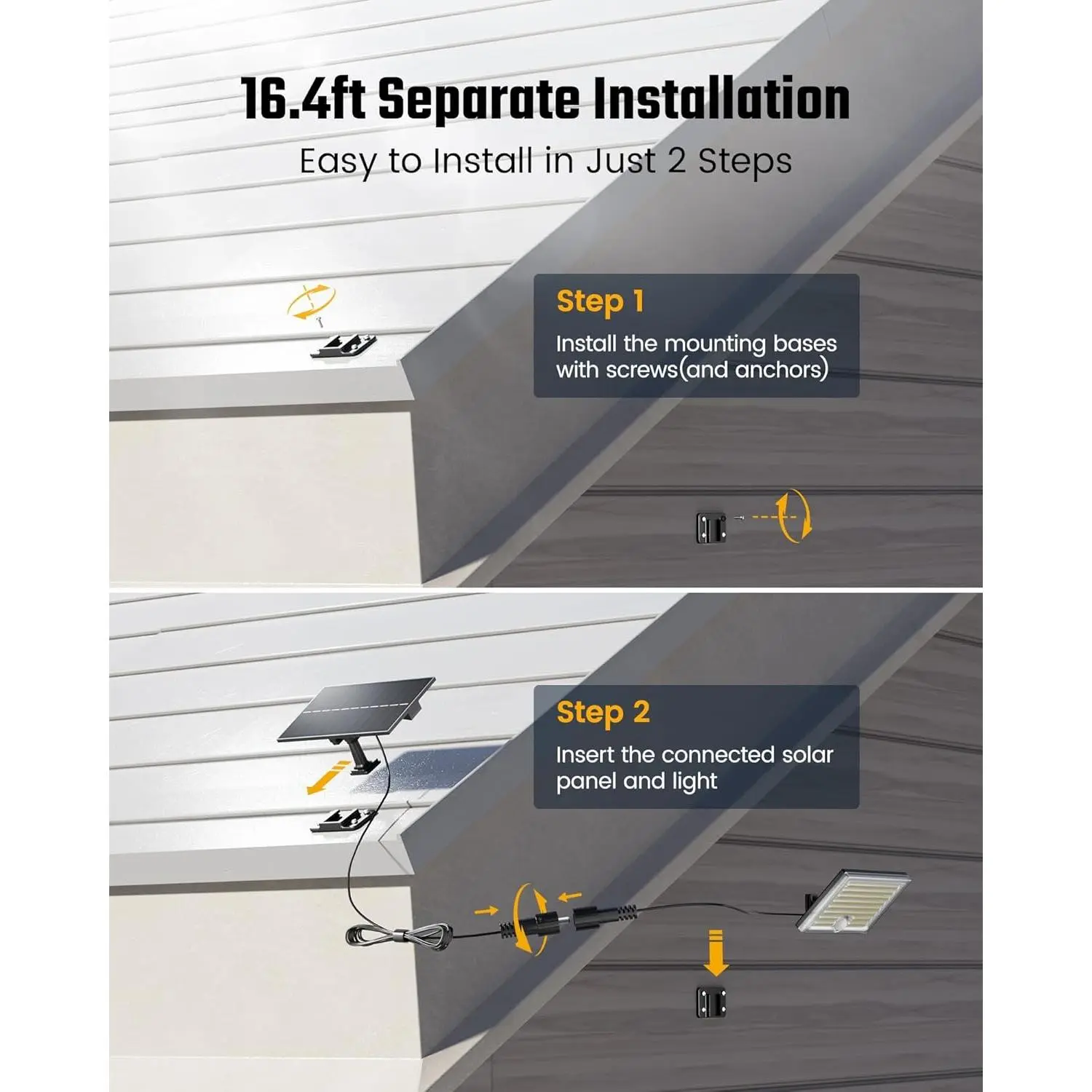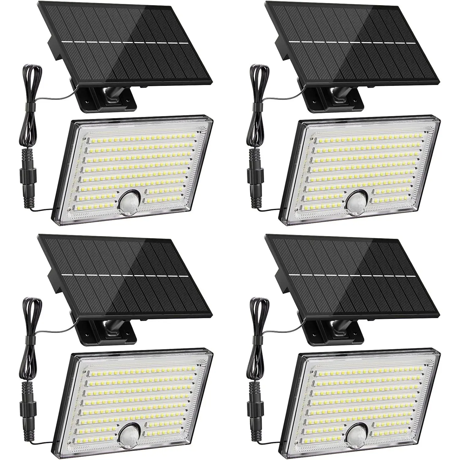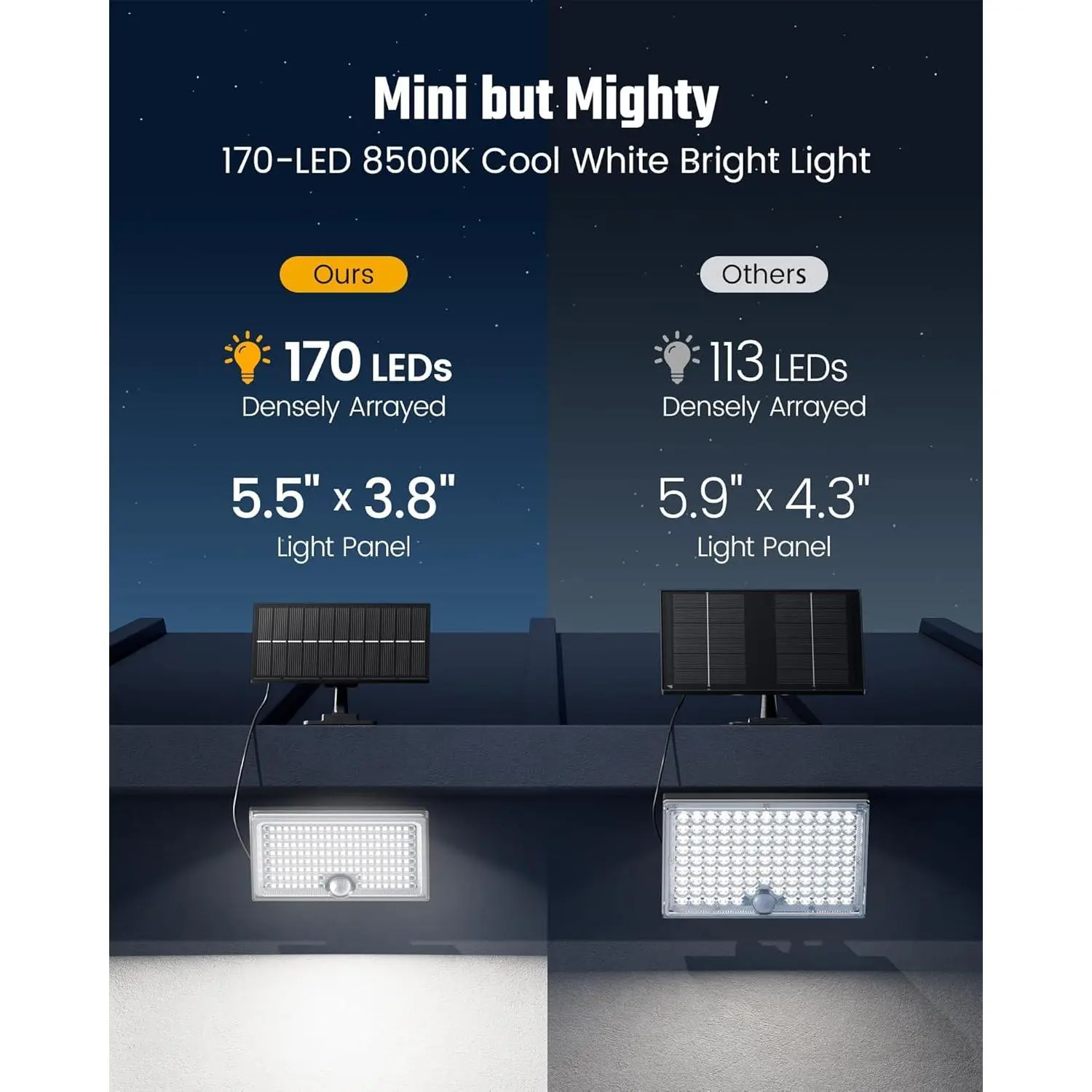 Mini Solar Lights Outdoor with Motion Sensor, 170-LED Solar Flood Lights Outdoor Dusk to Dawn with 16.5FT Cable, 3 Modes Solar LED Lights for Outside Waterproof IP65 for Patio, Yard, 4 Pack