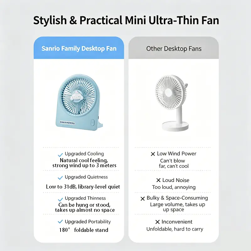 Enjoy a quiet yet strong breeze. The fan features a cute cartoon design, adding a fun touch to your workspace. Low noise ensures a peaceful environment. Stay cool without the hassle. 🌬️😊