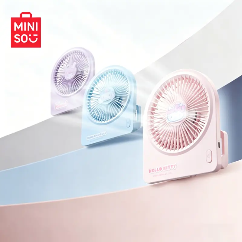 MINISO SR Characters Desktop Fan Quiet Strong Wind USB Plug-in Mini Fan for Office Dormitory Small Personal Cooling Fan Cute Cartoon Design Low Noise Portable Compact Desk Fan for Students Home Office Use