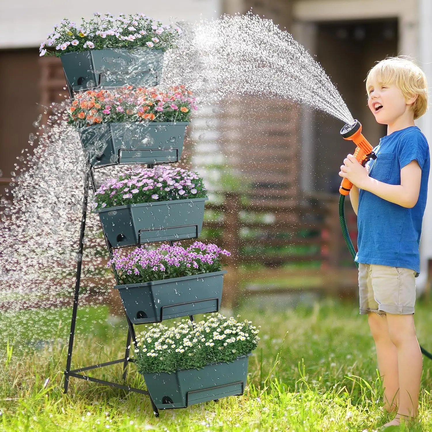 This 5-tier vertical raised flower bed is perfect for creating a beautiful garden.Its multi-layered structure not only makes plants easier to manage, but also adds a unique layering and visual impact to your outdoor space.