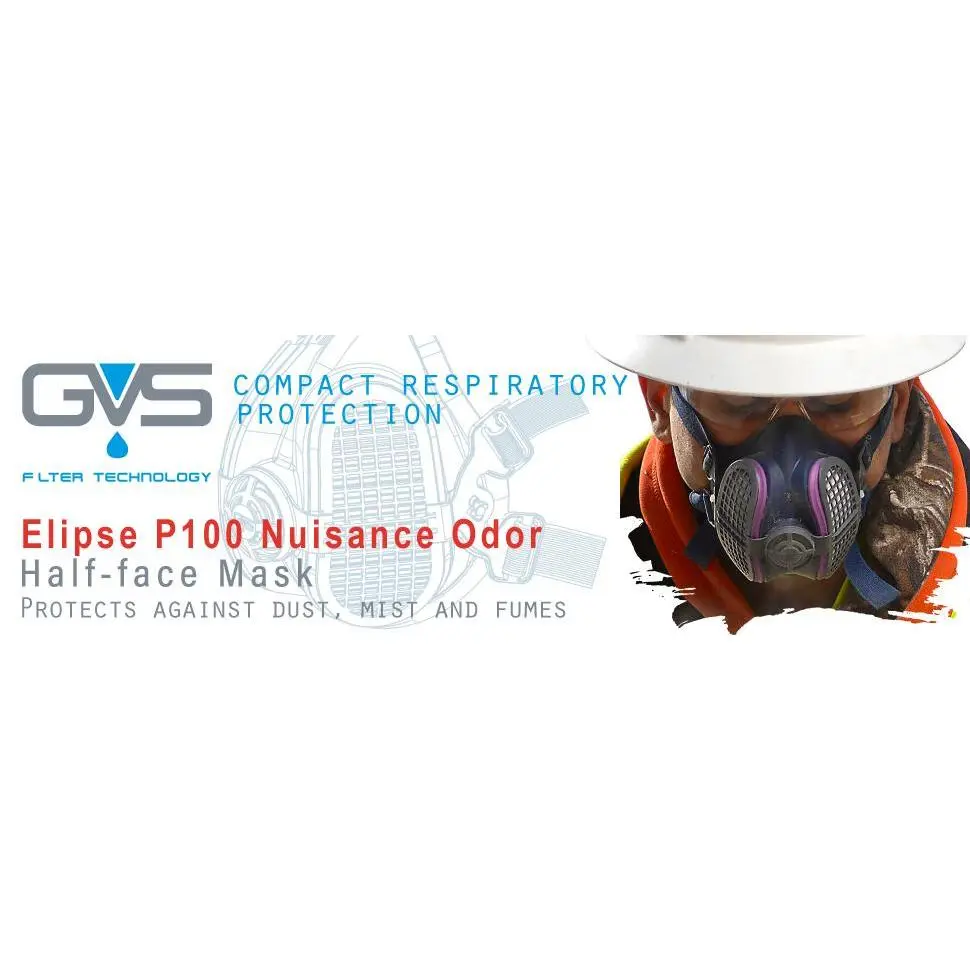 The Elipse mask range, designed and produced in the UK by GVS, represents amajor leap in respiratory innovation and design.Elipse has light and comfortable masks.Thanks to the ergonomic shape of the mask and the low-profile filter design provides the operator a wide field of vision.The compact size offers several unique solutions and can be worn comfortably with other PPE such as: eyewear, helmets and headphones.