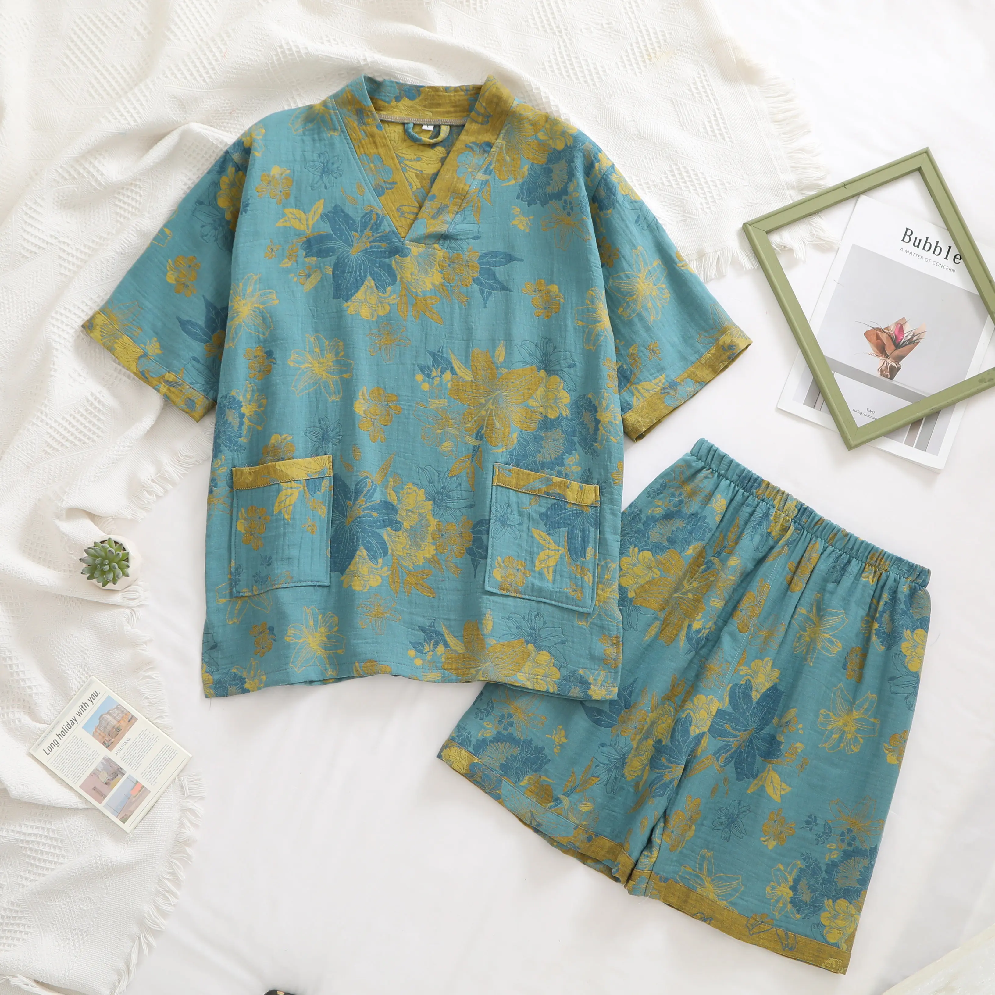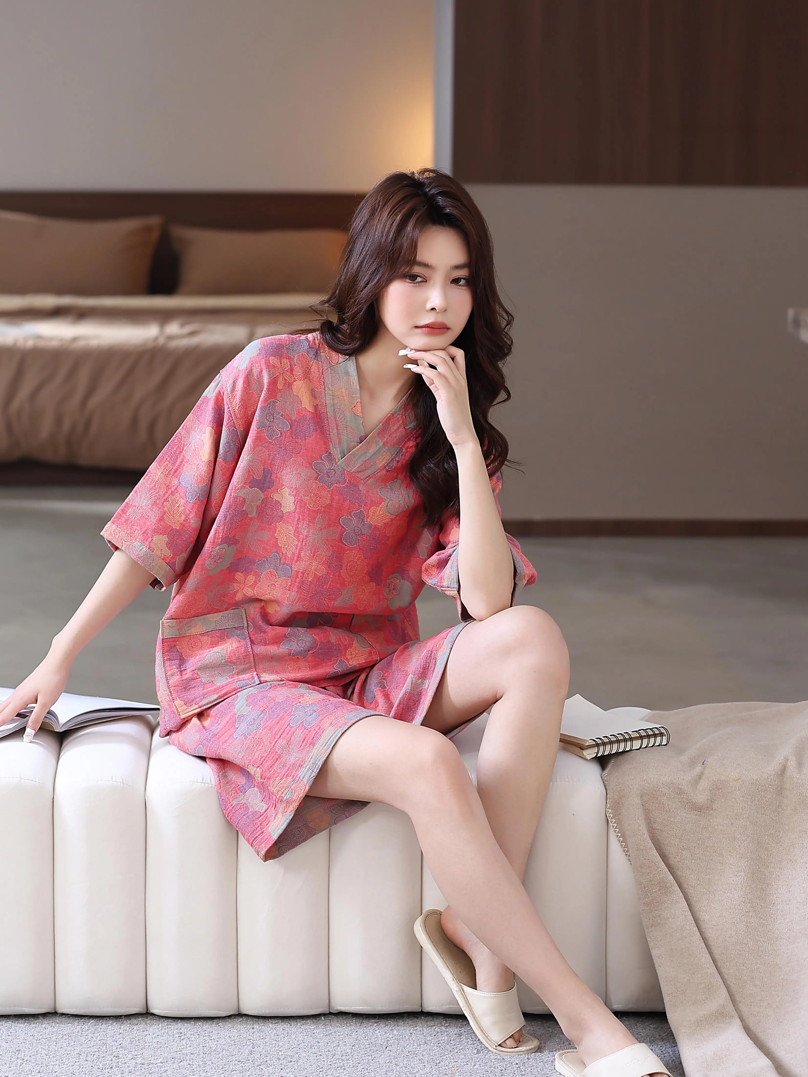 Pure cotton double-layer gauze bathrobe, Class A, spring/summer thin pajamas, home wear, couple's bathrobe, absorbent and quick-drying bathrobe