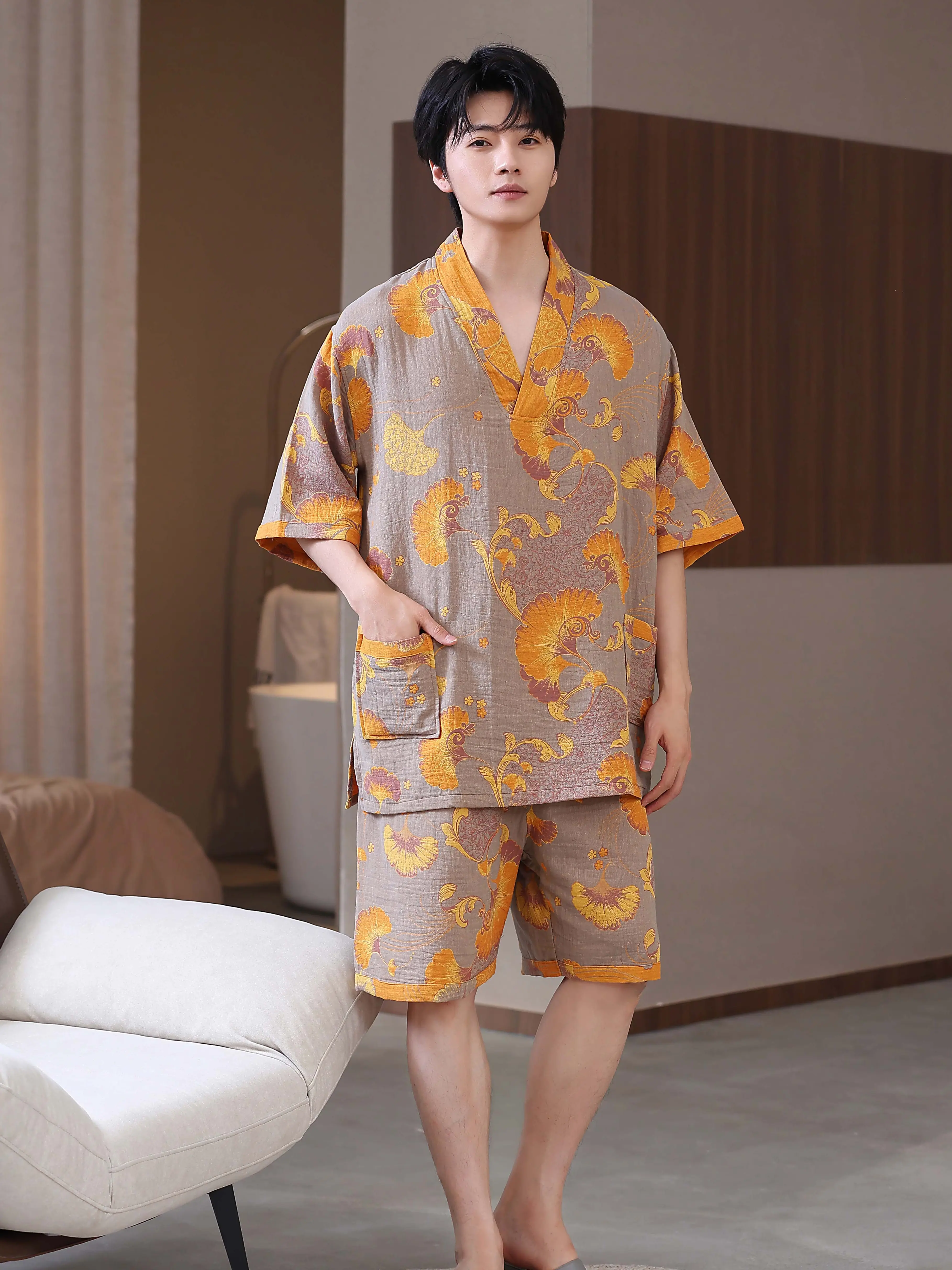 Cross-border pure cotton double-layer gauze jacquard sauna suit, massage sauna suit, couple's bathrobe, hotel bathrobe, therapy clothing wholesale