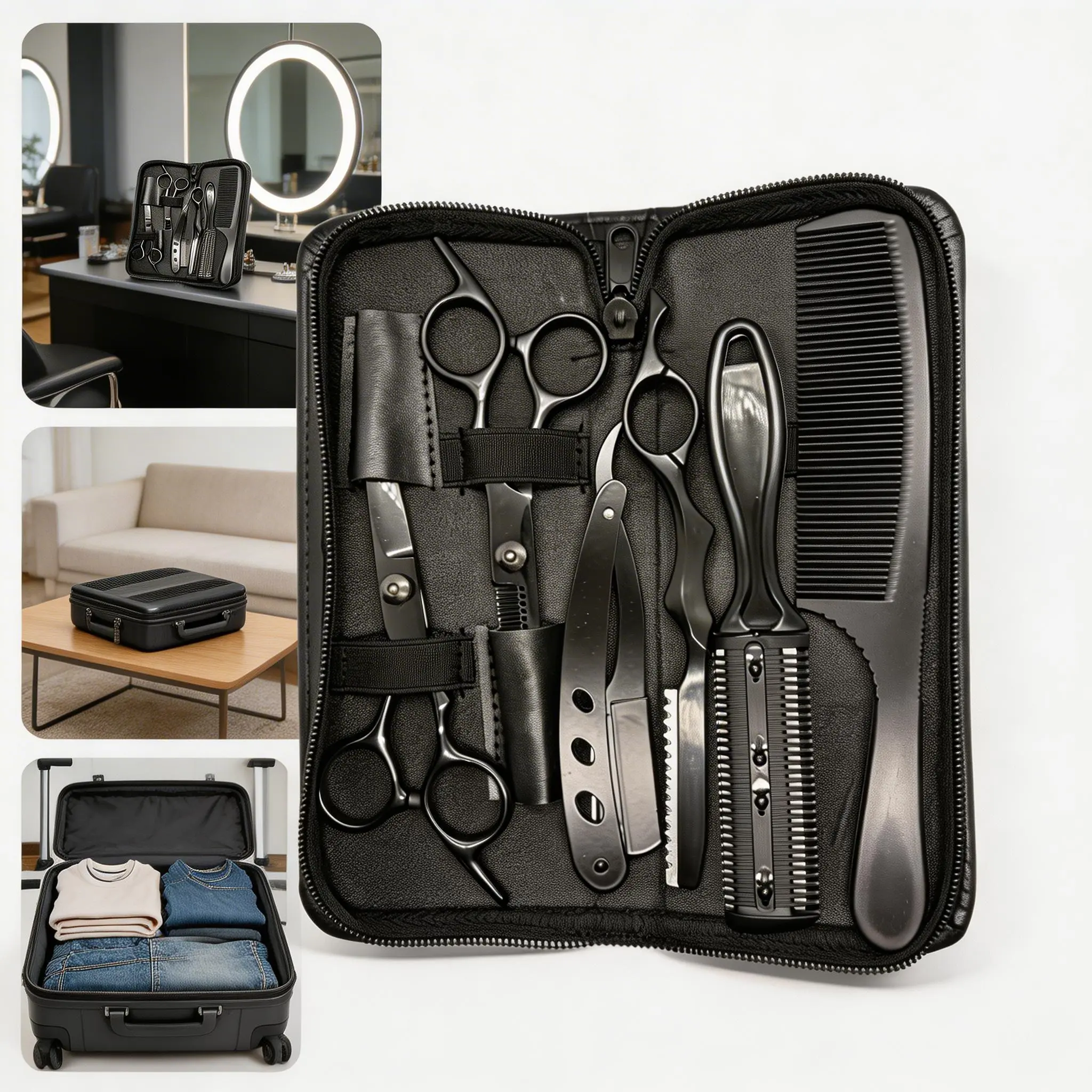 Achieve salon-quality haircuts at home with this 6PCS Professional Hair Cutting Kit — a complete grooming set designed for precision, convenience, and style.