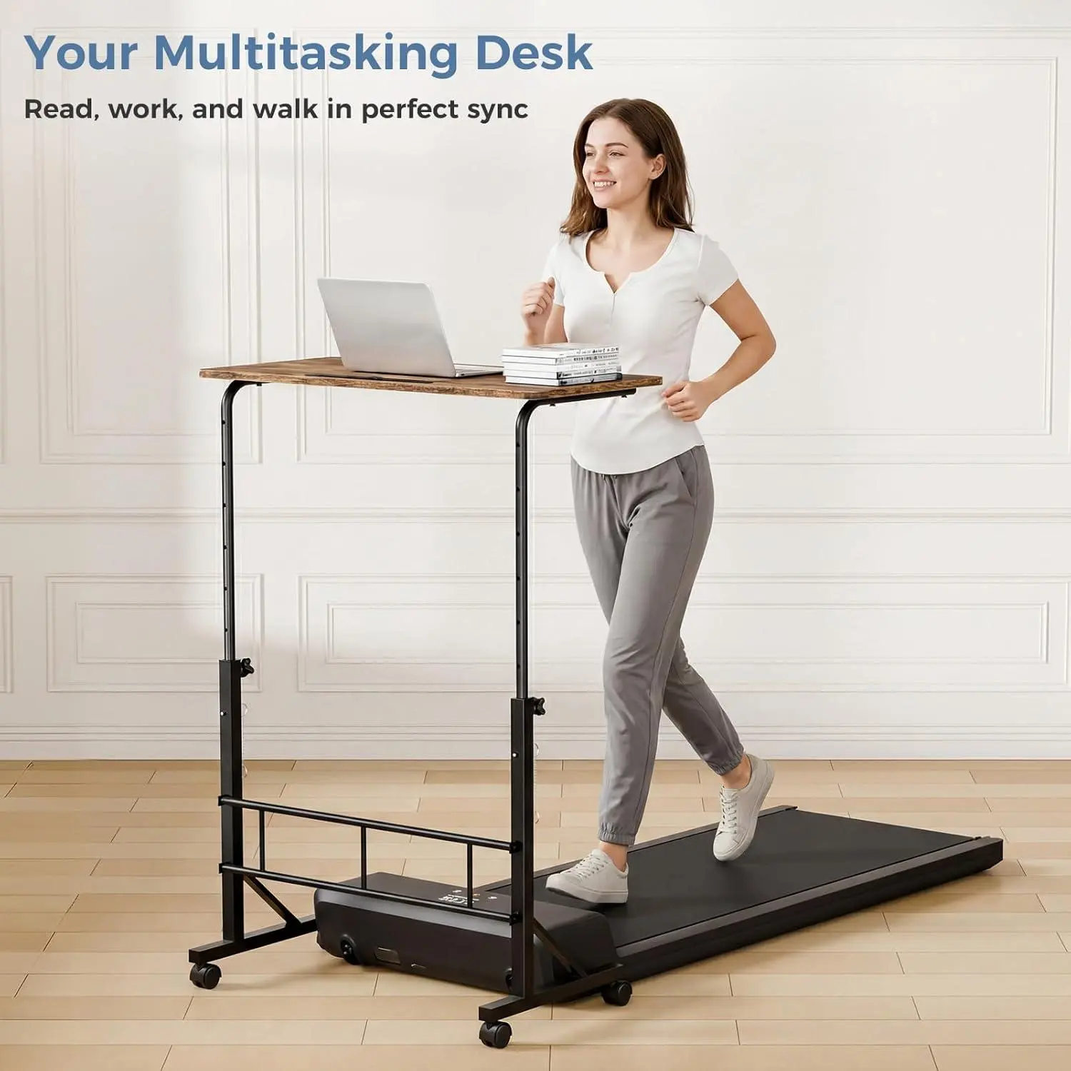 Elevate your work routine with this portable desk. Designed for walking pads and treadmills, it allows you to stay active while working. The pin-lock system and locking wheels ensure stability. Perfect for an active home office, it transforms sedentary work into a healthy experience. Enjoy smooth transitions with no hassle.