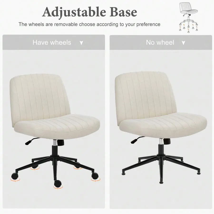 This criss cross office chair comes with a dual-purpose base that’s incredibly easy to switch: 5 smooth-rolling wheels for effortless movement around your home office, and 5 sturdy foot pads that can be easily replaced with a simple pull and push.With wheels attached, you can glide freely between your desk, sofa, or window-perfect for small home offices where flexibility matters.When you need stability, just switch to the foot pads for a secure, non-slip base, ideal for living rooms, waiting areas, or any space that needs a reliable seating option.