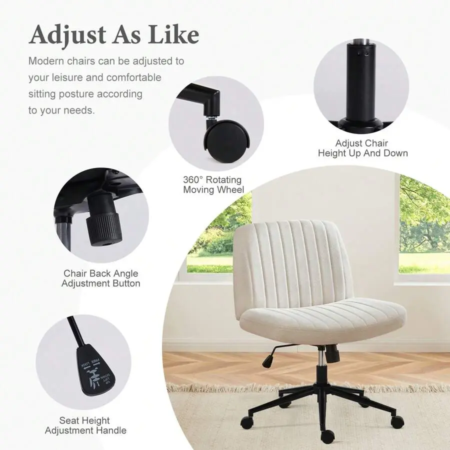 Elevate your home office, gaming space, or vanity area with this multi-functional criss cross office chair-designed for comfort, versatility, and practicality.Whether you’re working, gaming, or doing makeup, this chair seamlessly adapts to your needs, bringing both style and convenience to your space.